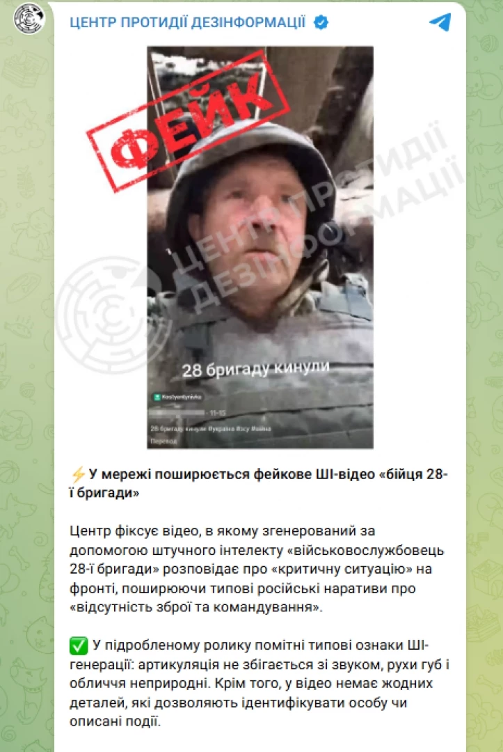 Центърът отново напомня, че подобни фалшиви материали са част от информационно-психологическите операции на Русия за увеличаване на паниката сред населението, дискредитиране на украинските части и подкопаване на доверието в официалната информация.