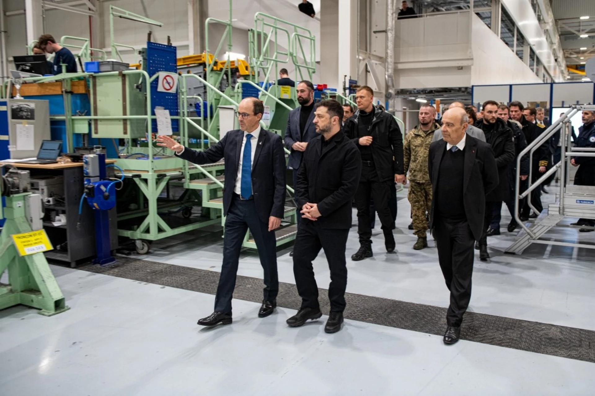 Ерик Трапие представи на украинския държавен глава производствените мощности на предприятието и говори за техническите характеристики и възможности на военните самолети.