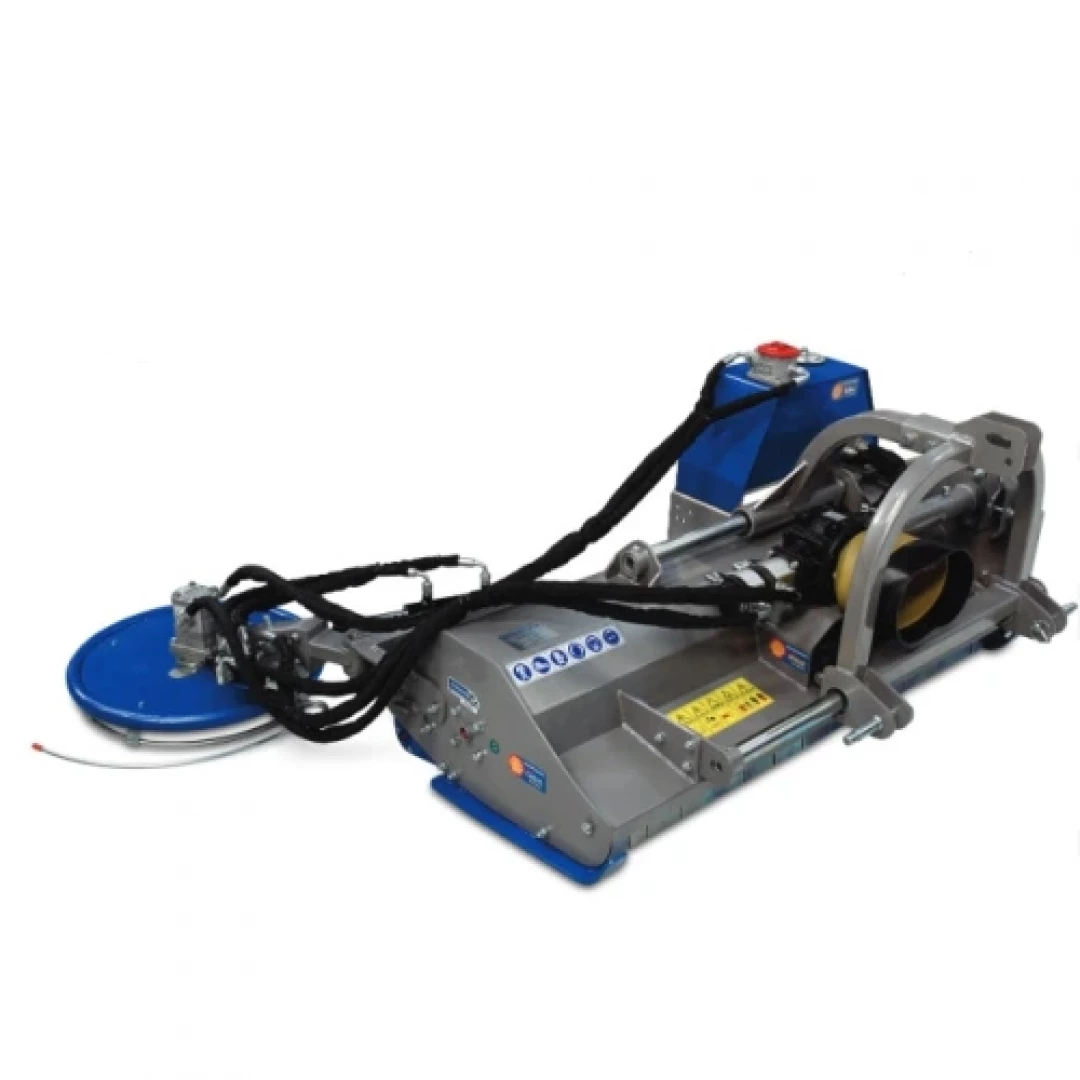 - Офсет мулчери. Тези модели имат хидравлично рамо, което ги фиксира странично спрямо трактора. Офсет мулчерите позволяват да се работи отстрани на пътни банкети, канавки и други тесни зони. Те са предпочитани за поддръжка на пътни банкети и терени, където има нужда от вертикално или под ъгъл рязане по стени и канавки.