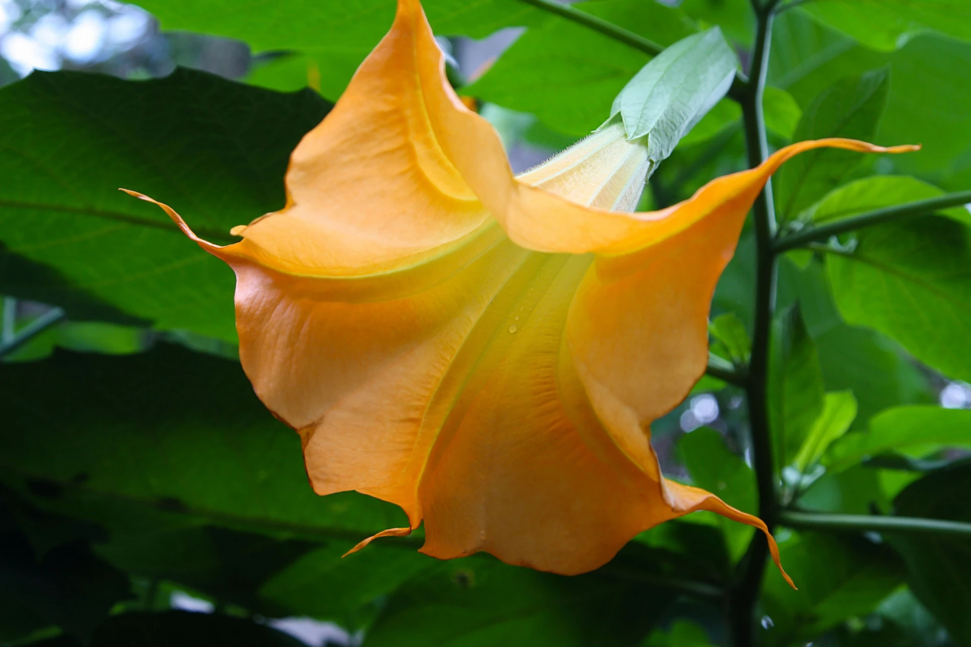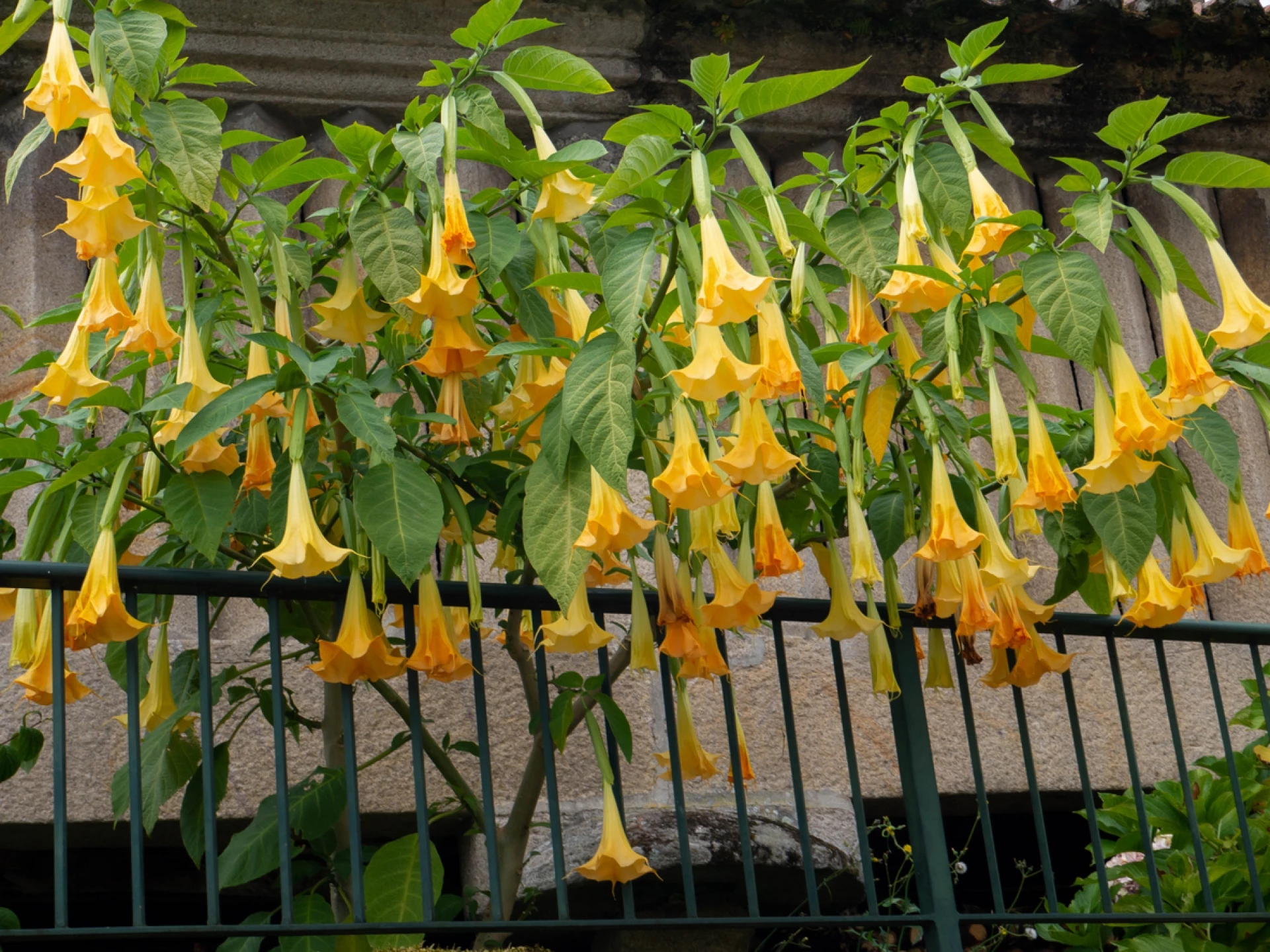 Бругманзия е бързорастящ, нежен храст, произхождащ от Южна Америка. Не е трудно да забележите това растение с неговите ароматни цветове с форма на камбанка. Тези големи цветове висят от стъблата като висулки и внасят цветен акцент във вашия двор в нюанси на бяло, оранжево, розово или жълто. Сезонът на цъфтеж варира при различните видове, като някои цъфтят през целия вегетационен период, а други само когато температурите започнат да падат. Обърнете внимание, че цветовете са силно токсични при поглъщане или вдишване от хора или животни