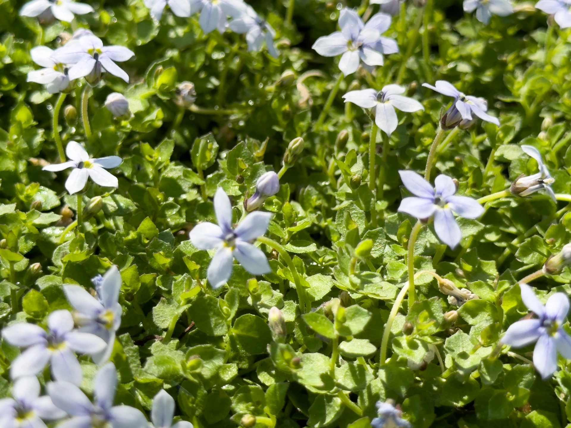 През пролетта образува папратовидна листа с нежни звездовидни цветове, които могат да бъдат лилави, розови или бели. Те окапват естествено, така че не е нужно да се притеснявате за мъртви цветове. Ако искате дълготраен цъфтеж през пролетта , може би е добре да започнете да засаждате семена на лаурентия на закрито през зимата. Отнема около четири месеца, за да може лаурентията да образува цветове от датата на засяване на семената.