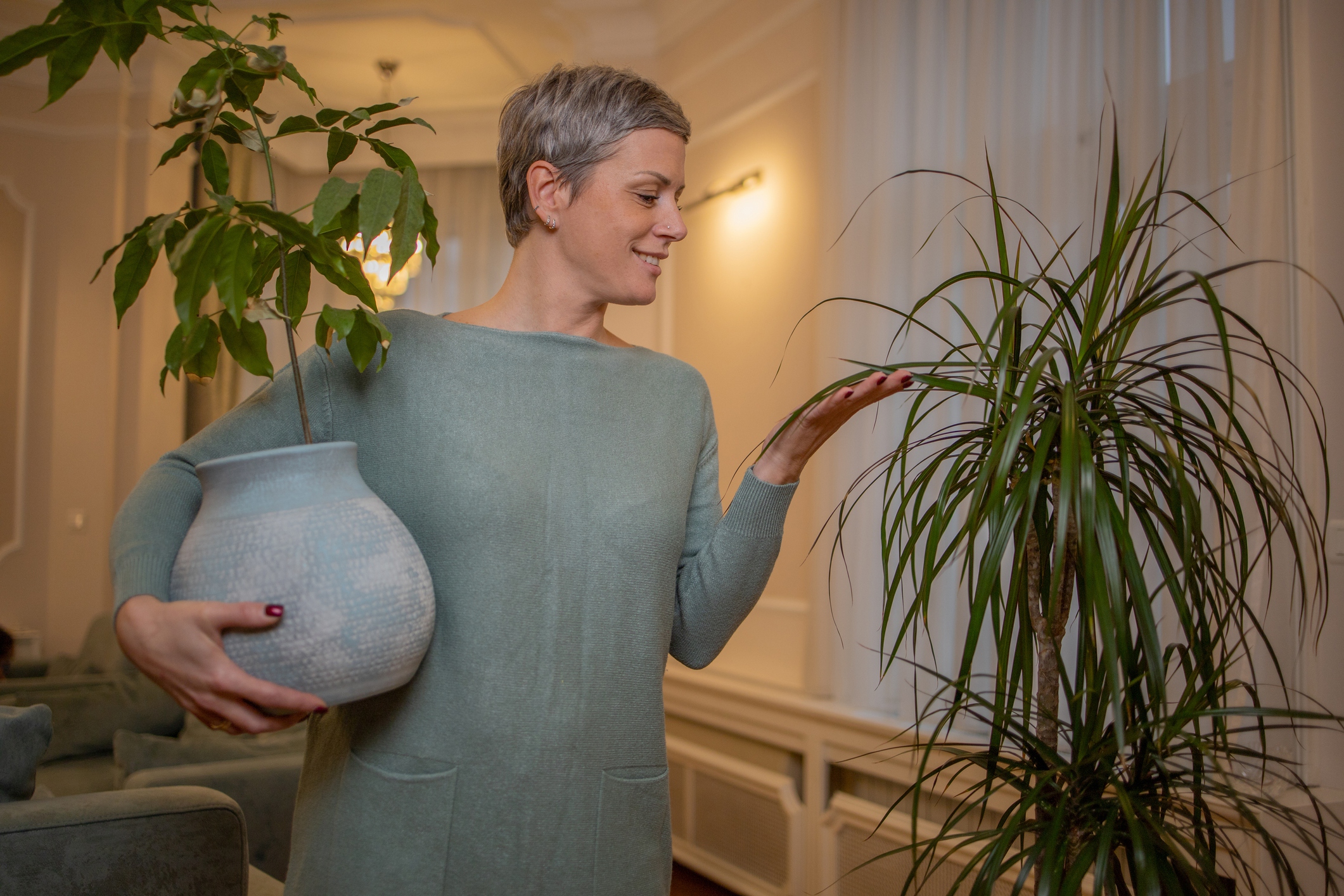 Също така е важно да се осигури стабилна температура и влажност. Есента е един най-коварните сезони за растенията у дома - през деня е още топло, но през нощта вече е хладно. Важно е да поддържате стабилна температура в стаята и да избягвате резки температурни промени, тъй като те са истински стрес за растенията. Не поставяйте саксии близо до радиатори или климатици.