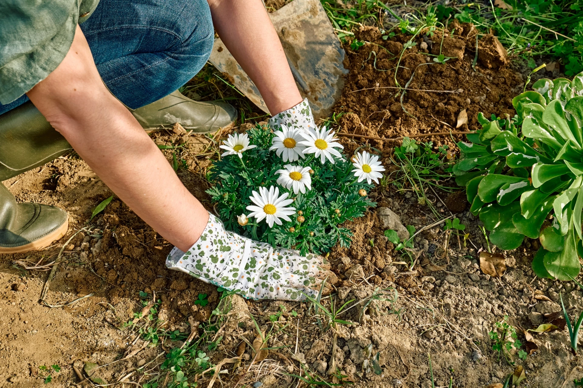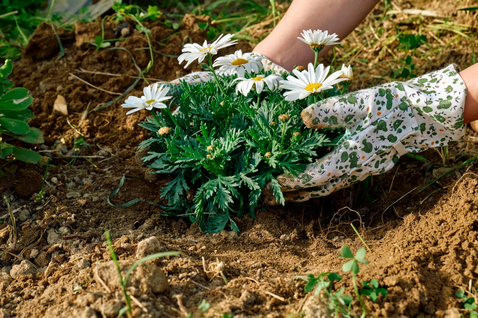 След като сте определили подходящото място за вашите маргаритки, започнете да копаете. Ще ви е необходима дупка, която е малко по-дълбока от корените на маргаритките (използвайте саксията от разсадника като ориентир) и около два пъти по-широка. Извадете растенията от саксията им и с пръсти внимателно разхлабете корените. Поставете всяко растение в дупката му и я запълнете с почвена смес или с почвата, която сте изкопали по-рано.