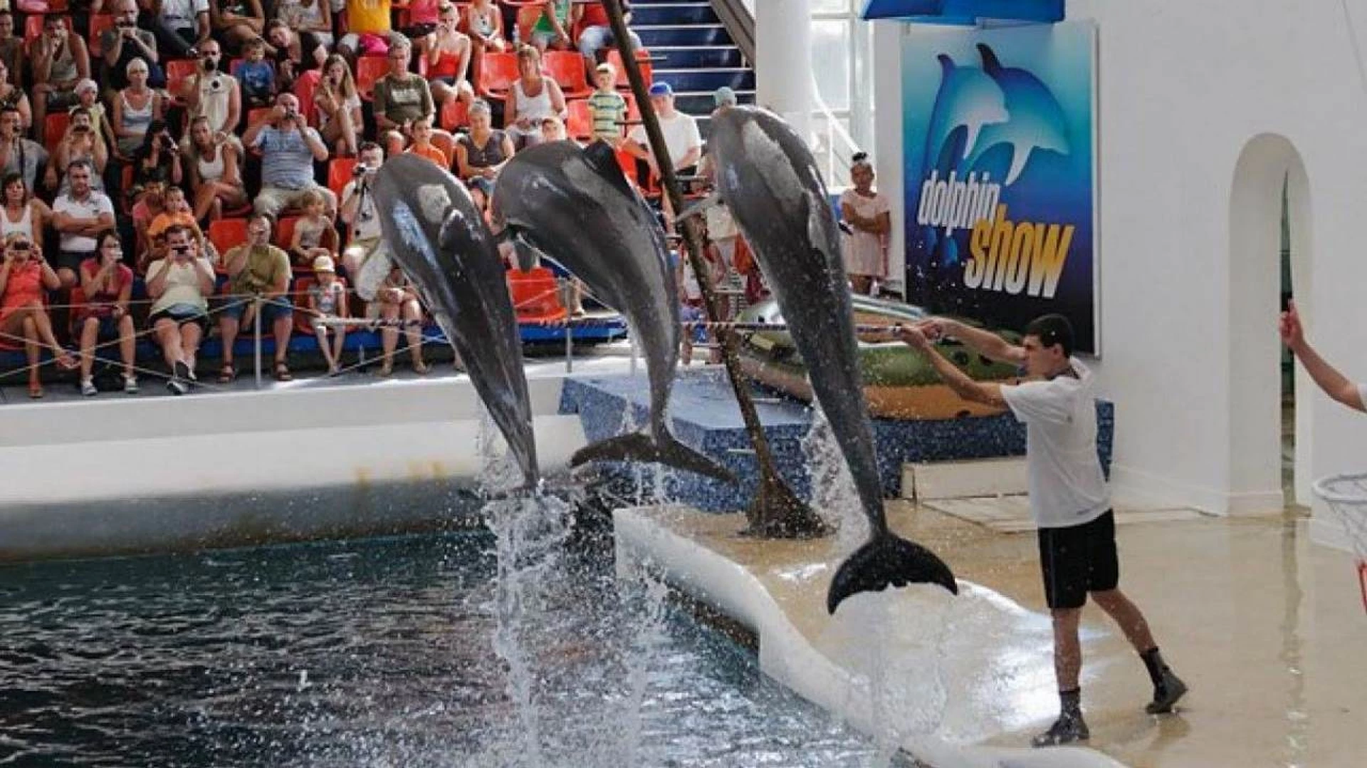 Част от представлението е спасяване на човек във водата. Делфините също така пеят и танцуват – рокендрол и валс. Част от шоуто е и тяхната игра на футбол с публиката.