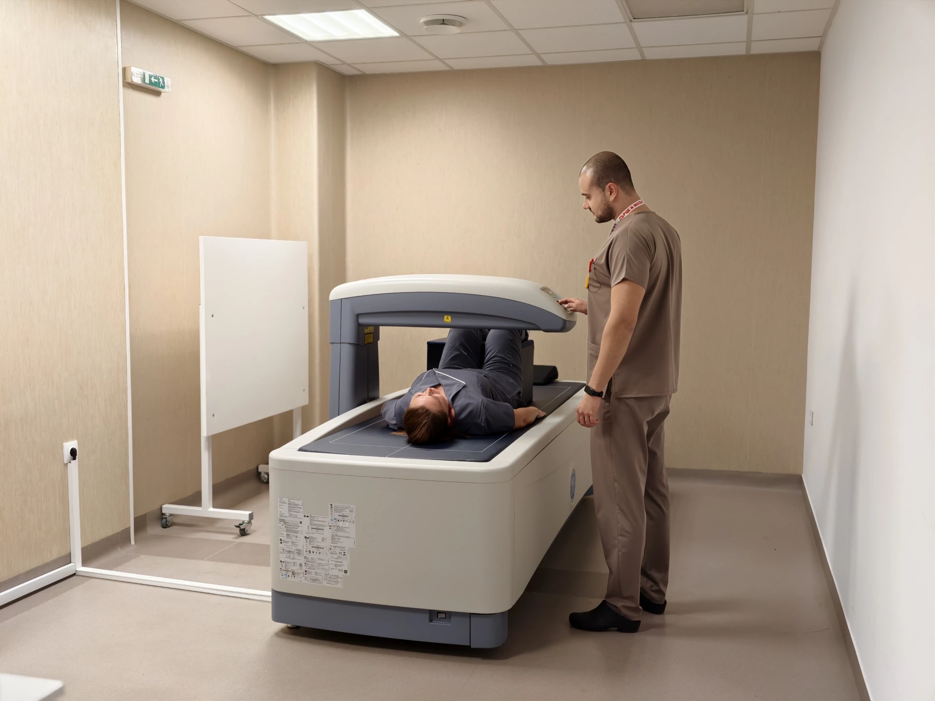 - По време на сканирането пациентът лежи на специална маса, докато скенерът преминава през определени области на тялото. Скенерът измерва как различните тъкани в тялото (кости, мускули, мазнини) абсорбират рентгеновите лъчи, предоставя точни данни за костния и мекотъканния състав. Колкото по-плътна е една кост, толкова по-малко рентгенови лъчи преминават през нея. Апаратът е с изключителна прецизност и ниска доза на радиация, като при изследването може да се установи загуба на костна плътност дори по-малка от 2%. Данните се анализират и костната минерална плътност се сравнява с референтните стойности. Остеопорозата може да се развива в продължение на много години, без да се проявяват симптоми. Сканирането с DEXA може да открие ранни признаци на загуба на костна маса, преди да се появят фрактури, което е особено важно за хора с висок риск, като например жени след менопауза, възрастни хора, хора с фамилна обремененост за остеопороза, лица, приемащи лекарства, които влияят на костната плътност. Предимството на нашия апарат, е че има и възможности за педиатрични измервания.