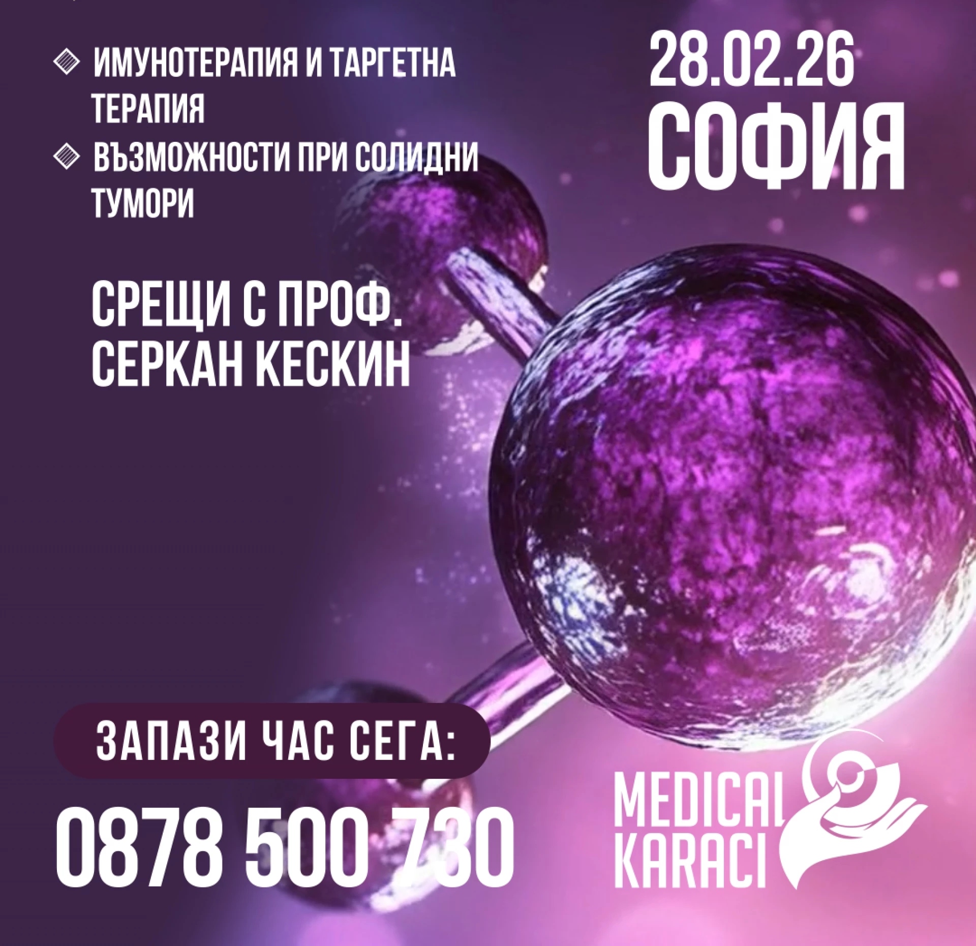 Именно такава възможност ще бъде предоставена на 28 февруари 2026 г. в София, когато у нас отново гостува медицинският онколог проф. д-р Серкан Кескин от болница Мемориал, Истанбул.