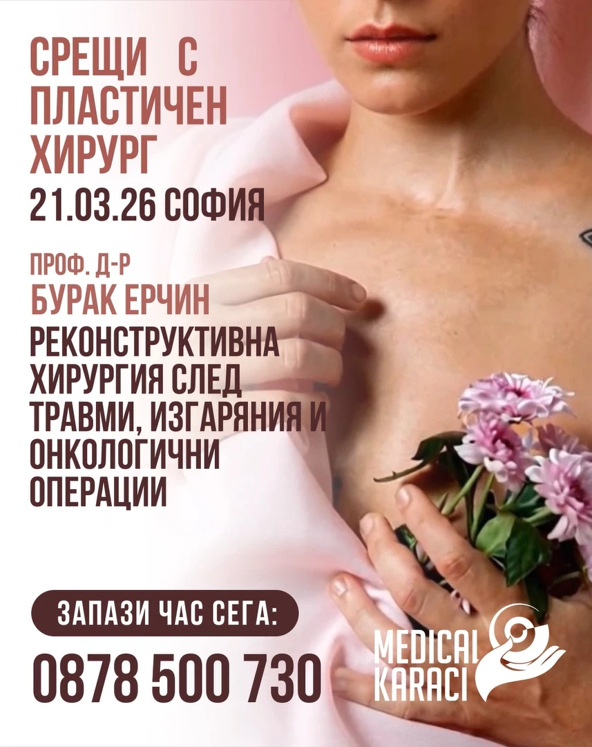 На 21-ви март в София ще имате възможност да се срещнете с проф. д-р Бурак Ерчин - специалист по пластична и реконструктивна хирургия с над десет години международен професионален опит. Срещите с проф. Ерчин се организират от Здравен информационен център „Медикъл Караджъ“ и дават възможност на българските пациенти да получат повече информация за съвременните подходи в пластичната и реконструктивната хирургия в чужбина.