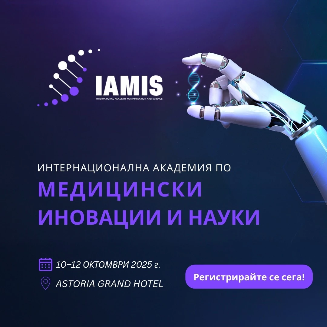 Най-новите тенденции в медицината ще обсъдят водещи български и международни лекари на конференция в София. Под мотото „Иновациите, които ни свързват“ Интернационалната академия по медицински иновации и наука (IAMIS) ще даде началото на нова инициатива, посветена на иновациите, които свързват медицината, науката и технологиите. IAMIS обединява специалисти и изследователи за каузата на по-добро и устойчиво здравеопазване. Събитието ще се проведе от 10 до 12 октомври тази година.