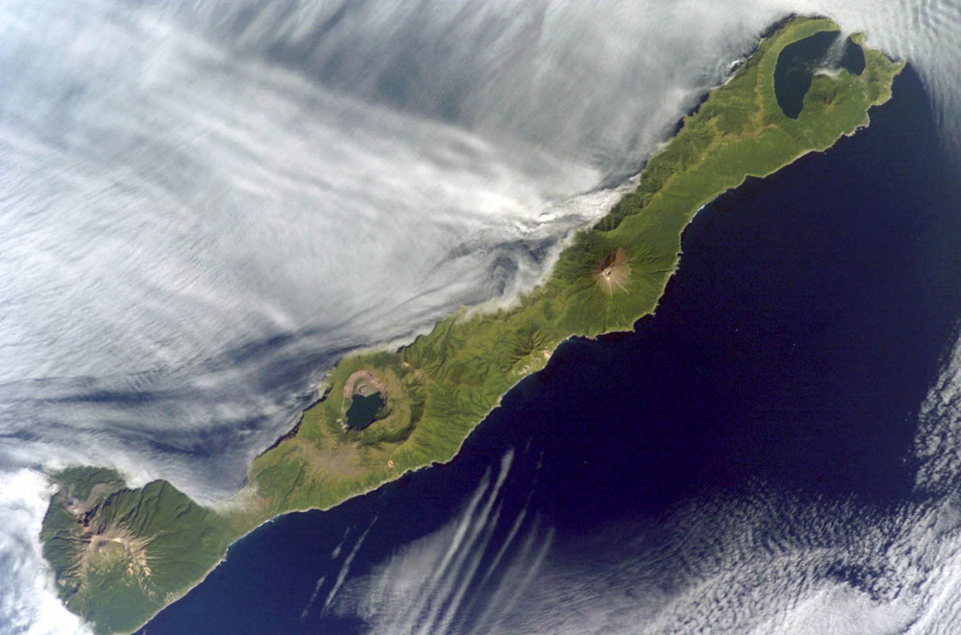 Сателитна снимка на остров Симушир. NASA