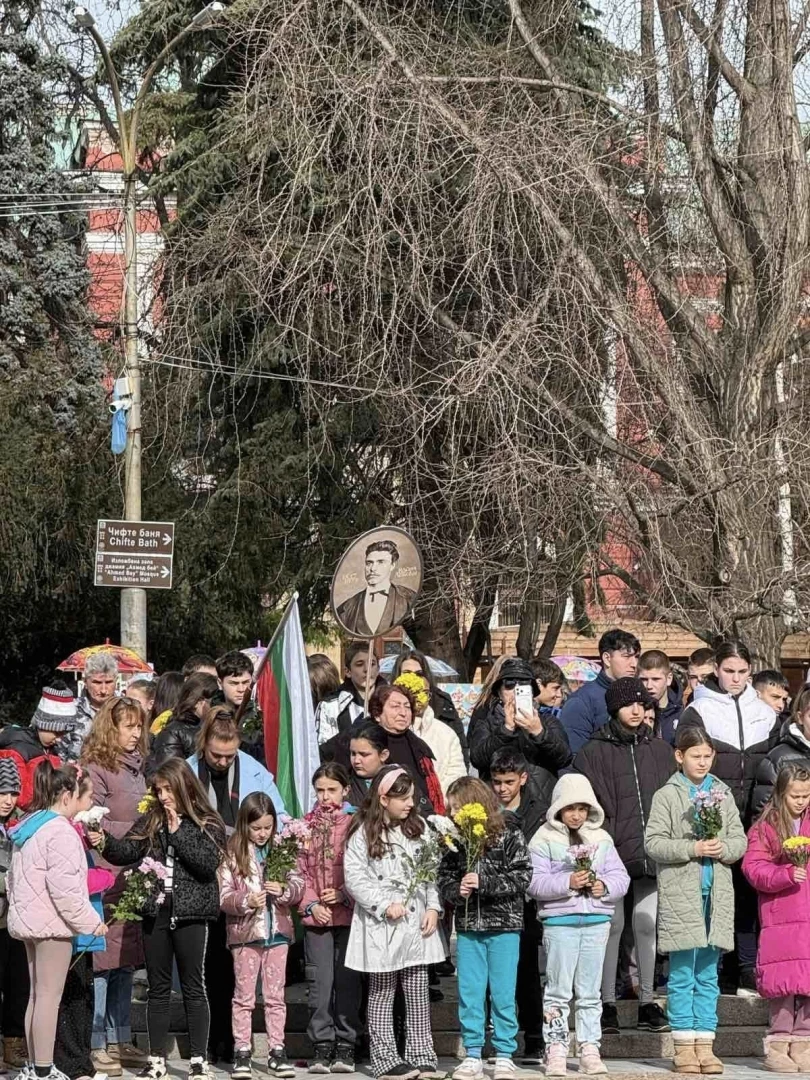 Пред паметника на националния герой граждани, представители на институции и ученици сведоха глава в знак на почит и признателност към делото и саможертвата му.