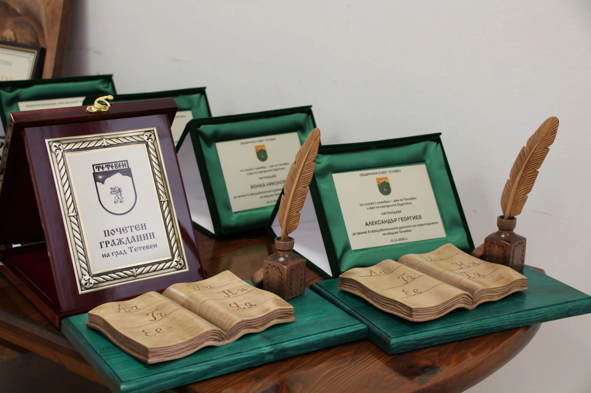За принос в образователната дейност на територията на община Тетевен, по повод Деня на Тетевен и Деня на народните будители, с почетни плакети бяха удостоени г-жа Йонка Николова и г-н Александър Георгиев. С плакети бяха удостоени още местната пожарна и районно управление - в знак на уважение, признателност и благодарност за всеотдайността, професионализма и неуморните усилия при изпълнение на служебните им задължения. След това за различни постижения бяха наградени заслужили ученици, а краят на програмата бе сложен с изпълненията на народната певица Виктория Николова.