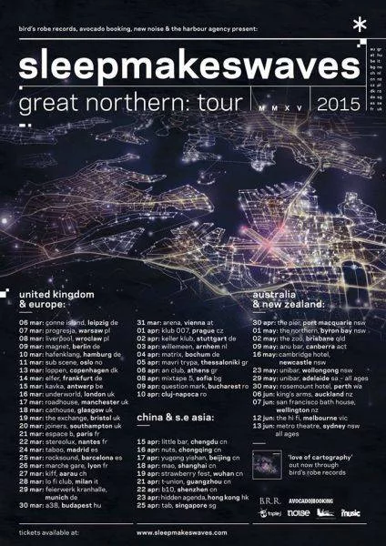 Австралийската пост-рок банда Sleepmakeswaves ще свири на 8 април в София по покана на уебзина Rawk'n'Roll, като концертът им е част от настоящото турне The Great Northern Tour. Обиколката е в подкрепа на излезлия през минaлата година “Love Of Cartography” и обхваща почти цяла Европа, включително и София.