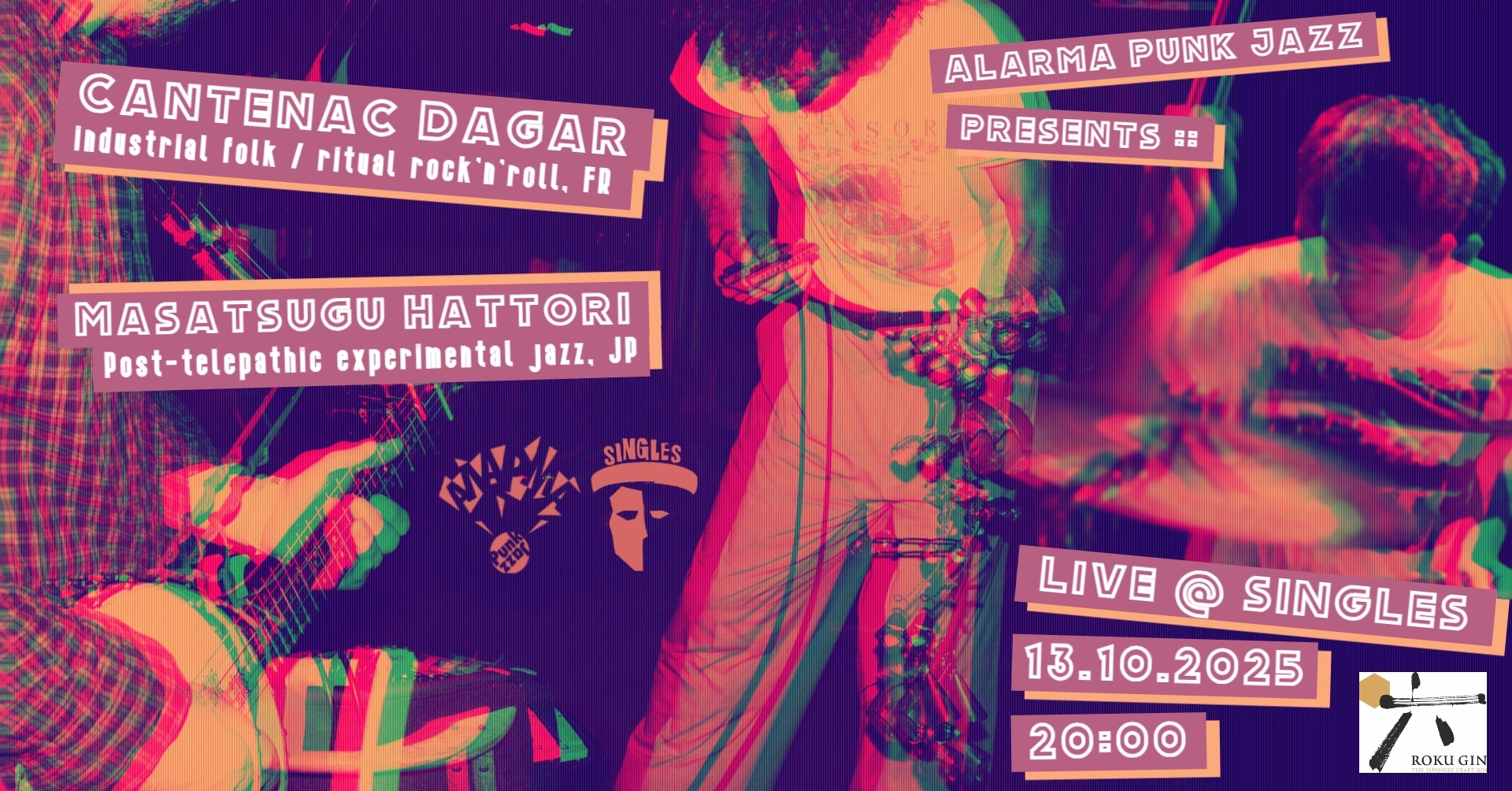Преди Cantanac Dagar в Зала "Сингълс" на НДК ще слушаме японския барабанист, перкусионист, експериментатор и композитор Масацугу Хатори (Masatsugu Hattori). За "Аларма Пънк Джаз" 2025 беше силна японскa година (с концерите на Akira Sakata 80th Anniversary Quintet, heavenphetamine, Казухиса Учихаши, Шинго Масуда и Acid Mothers Temple & The Melting Paraiso U.F.O.), а Масацугу Хатори съвсем не е непознато име за българския слушател.