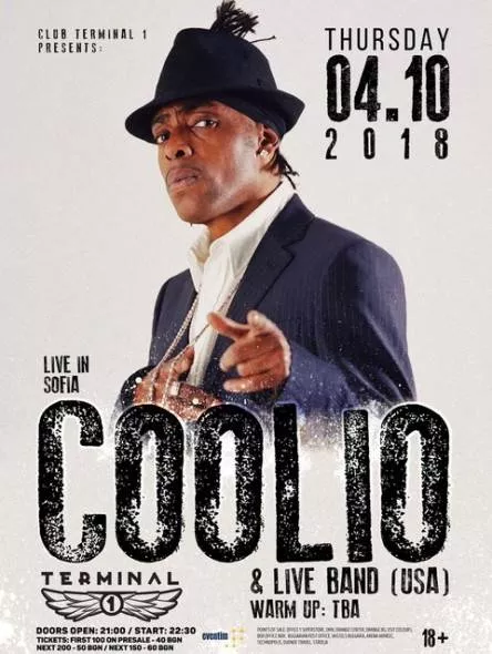 Супер звездата COOLIO, носител на награда Grammy за Best Rap Performance и с над 17 милиона продадени записа по целия свят, идва за нов концерт в България - на 4 октомври в столичния клуб “Терминал 1”. Изпълнителят на "Gangsta's Paradise" ще посети страната ни като част от Европейското си турне, което ще започне именно от тук, а до края на октомври ще обиколи повечето европейски държави.