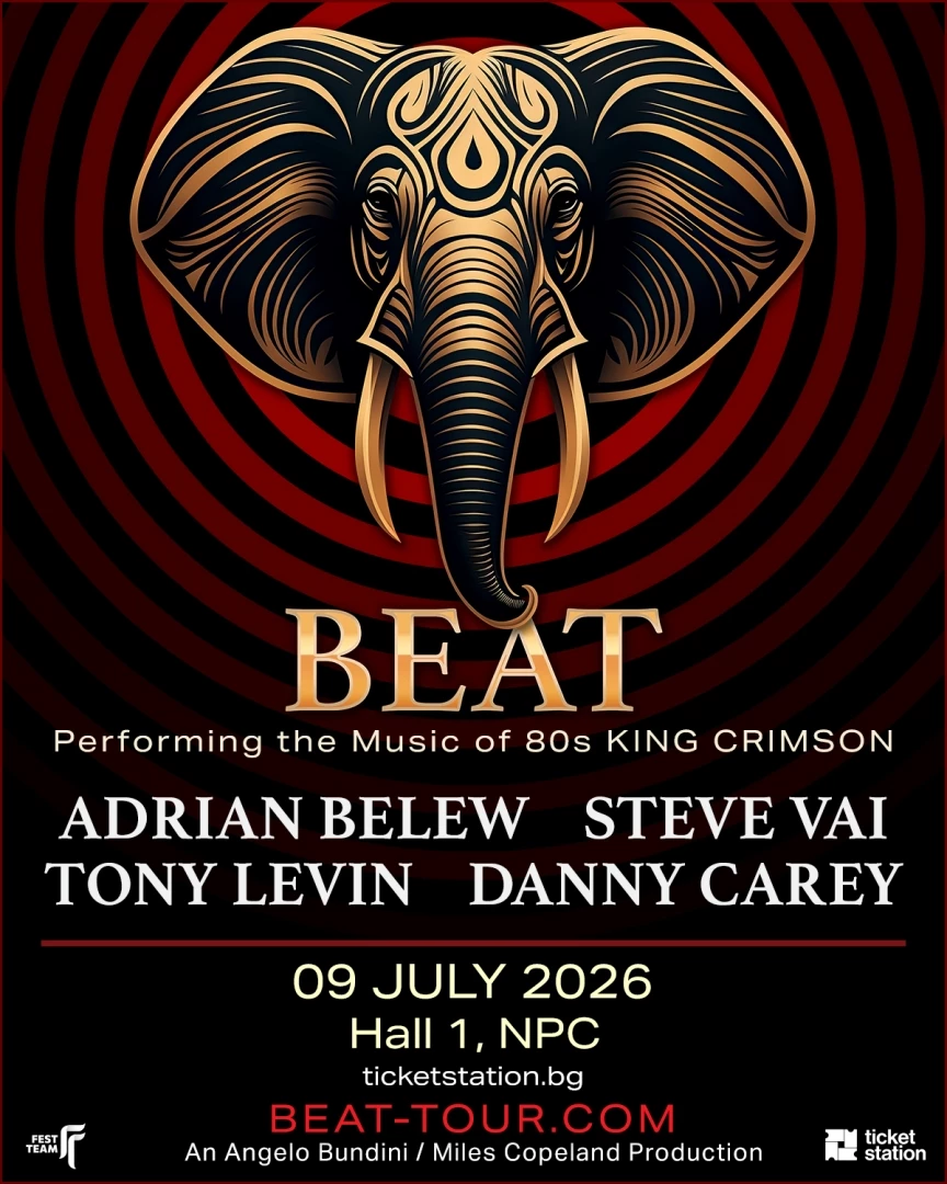 "Здравейте на всички, BEAT идват в Европа през 2026. Много се вълнуваме и нямаме търпение да свирим за вас. Знаем, че отдавна го очаквате, затова ще се видим през лято 2026", това казват Adrian Belew, Steve Vai, Tony Levin и Danny Carey в специален поздрав към българската публика, с който супергрупата обещава голямо шоу на 9 юли.