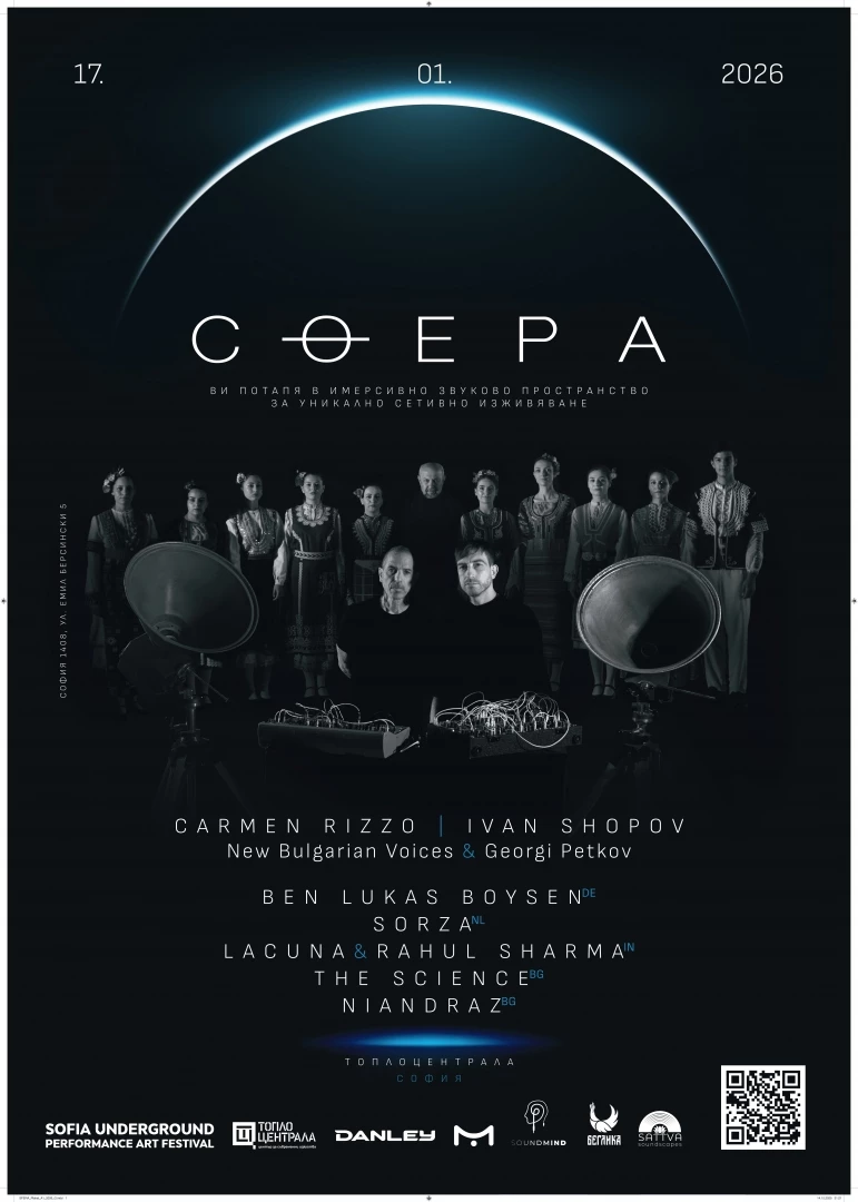 На 17 януари в РЦСИ "Топлоцентрала" в София ще се състои СФЕРА vol. 1 – първото по рода си имерсивно аудио събитие в България, което ще трансформира възприятието за електронна и експериментална музика чрез пространство, изградено изцяло със звук, еклектична селекция от творчество на локални и чуждестранни гости. Билетите вече са в продажба в системата на Билет.бг.