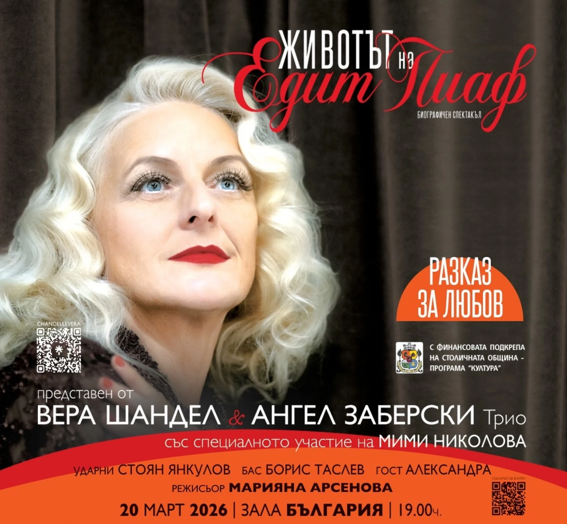 Това разказа за френската легенда Едит Пиаф певицата Вера Шандел в предаването "Студио Actualno", по повод биографичния спектакъл "Животът на: Едит Пиаф", създаден именно от Вера Шандел и Ангел Заберски Трио под режисурата на Марияна Арсенова.