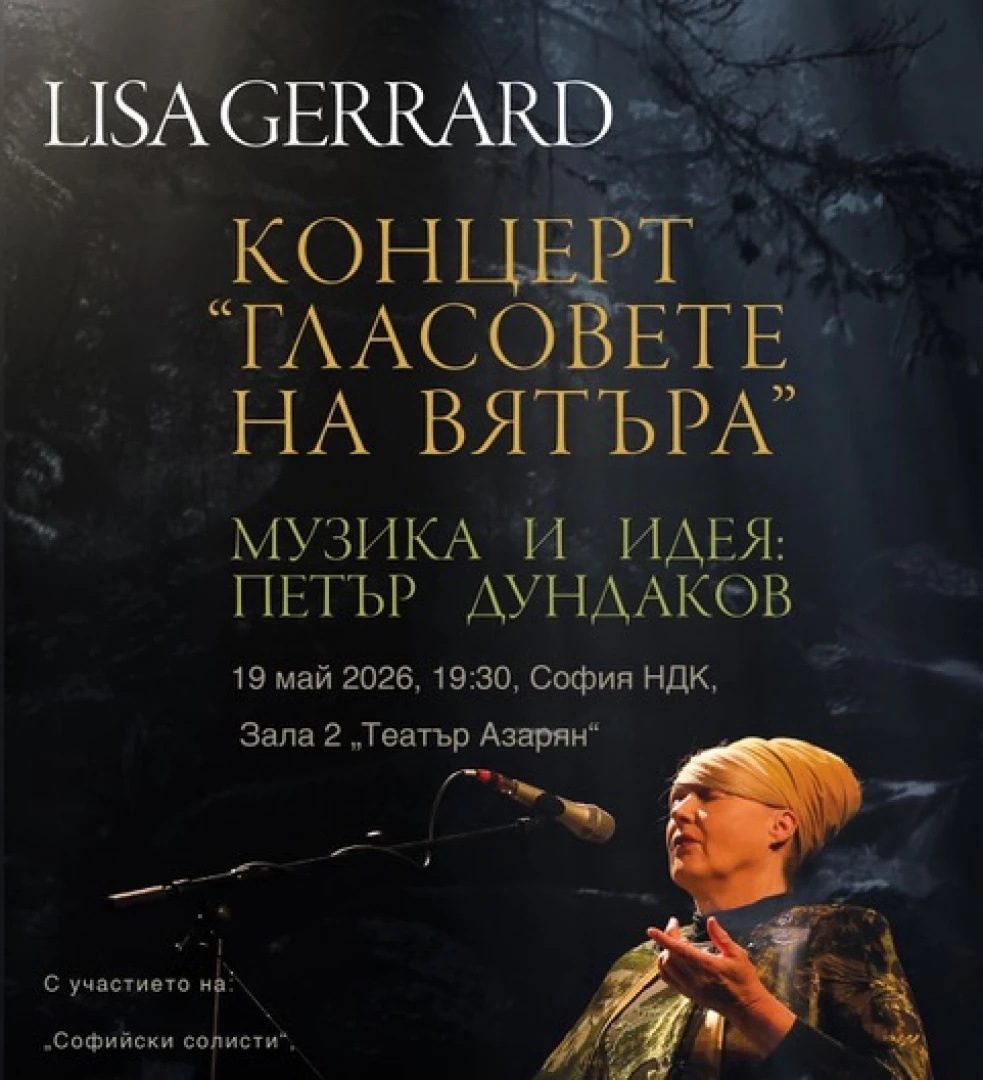 Световноизвестната австралийска певица Лиса Джерард (Lisa Gerrard), емблематичният глас на легендарната група Dead Can Dance и носителка на "Златен глобус" за музиката към филма "Гладиатор", пристига в България за специално участие в премиерния концерт на проекта "Гласовете на вятъра" (Voices of the Wind) по идея и музика на композитора Петър Дундаков. Събитието ще се състои на 19 май 2026 г. от 19:30 ч. в зала 2 на НДК – Театър "Азарян".