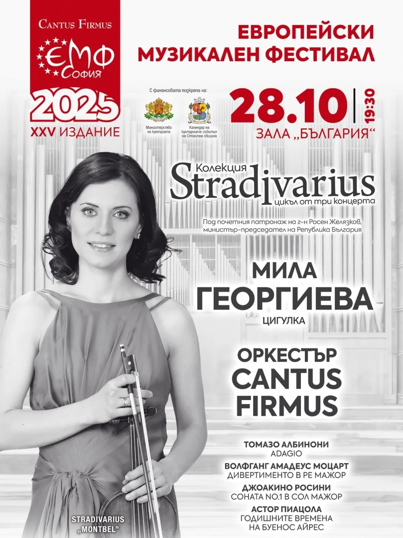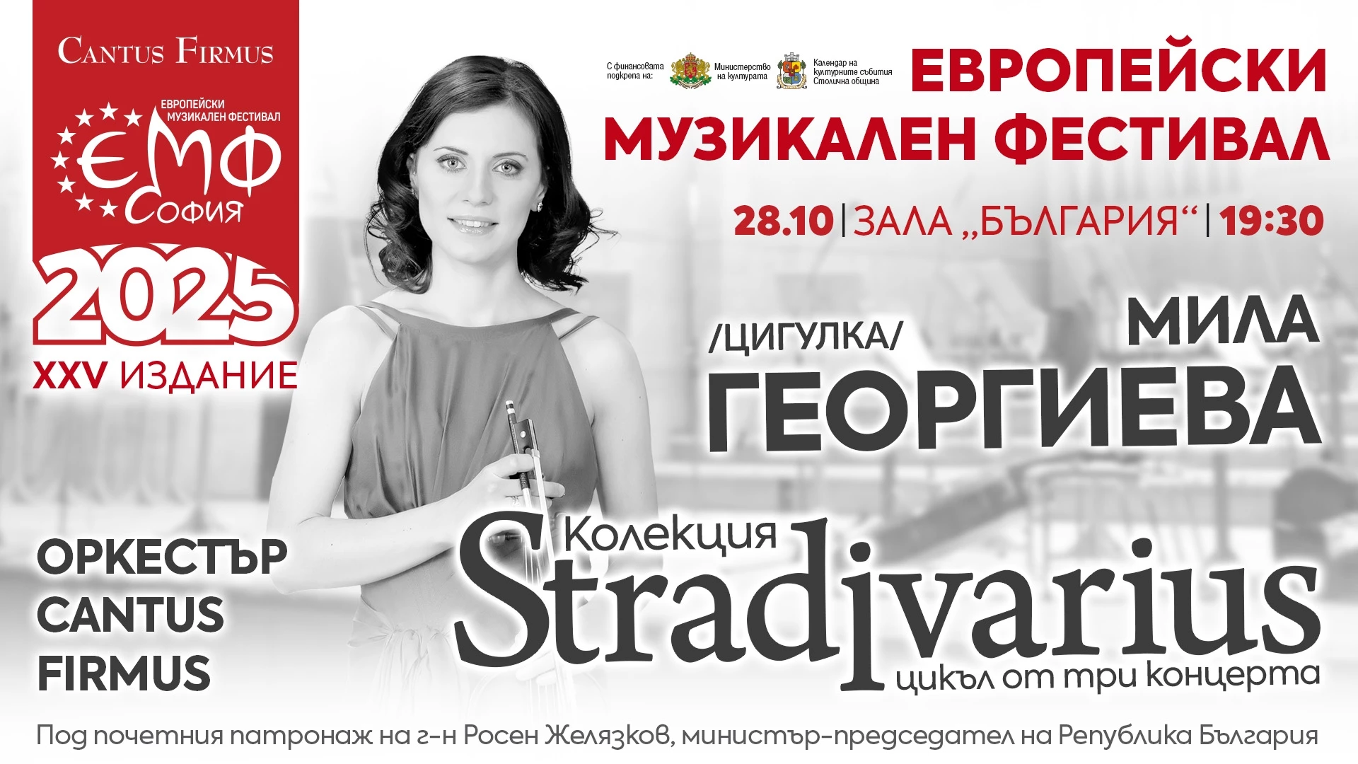 На 28 октомври 2025 г. започва едно от най-вълнуващите събития в програмата на 25-ия "Европейски музикален фестивал" в София – цикълът от три концерта "Колекция Stradivarius", който почитателите на висшето цигулково майсторство вече очакват с нетърпение. Поредицата ще презентира трима брилянтни български цигулари в партньорство с Оркестър Cantus Firmus, всеки от които с таланта си е извоювал правото да свири на музикален инструмент от най-висша класа.