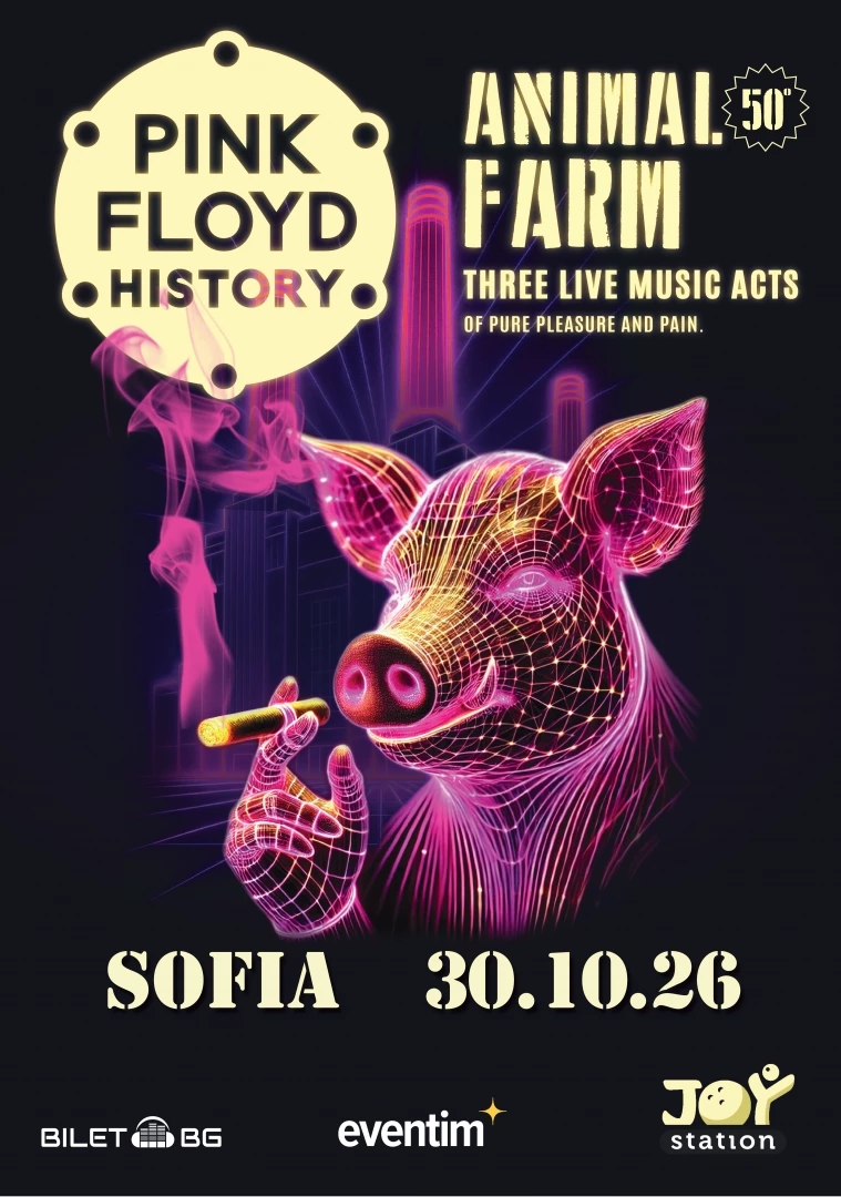 След силния интерес към първата част, Pink Floyd History идват отново в София, този път с Animal Farm – еволюирала версия на спектакъла, който не просто повтаря познатото, а разгръща нови пластове от музиката, визията и посланията на една от най-влиятелните групи в историята на рока.