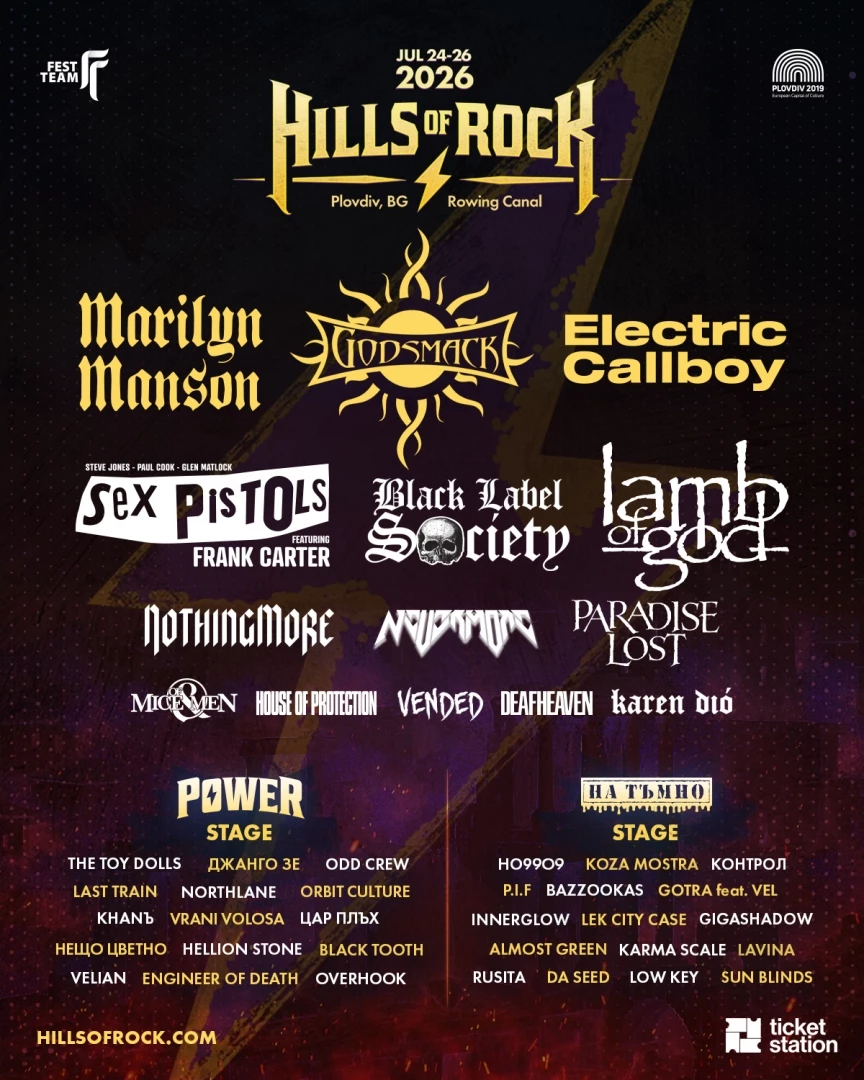 Картината на HILLS OF ROCK 2026 се подрежда по сцени и вече е ясна, между 24 и 26 юли на Гребната база в Пловдив фестивалът отново ще заживее чрез тежката музика и своите хора. Новата Power Stage сцена, сцената На Тъмно и последната вълна от артисти допълват фестивалната картина и подчертават мащаба и жанровото разнообразие на тазгодишното издание в Пловдив. Към вече обявените хедлайнери и международни имена на HILLS OF ROCK 2026 се присъединяват още изпълнители от различни жанрове, поколения и сцени, които за поредна година ще превърнат Пловдив в епицентър на рок, метъл и алтернативната култура през лятото на 2026. Tридневни и еднодневни билети има в продажба в мрежата на Ticket Station.