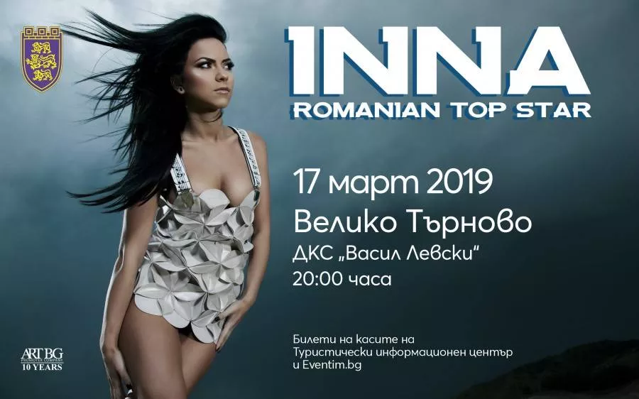 Една от най-атрактивните съвременни поп изпълнителки INNA най-после ще зарадва хилядите си почитатели у нас със самостоятелен концерт! Сексапилната румънка ще пее пред българска публика на 17 март в ДКС “Васил Левски”, Велико Търново. Събитието е организирано от АРТ БГ и Община Велико Търново по повод празника на старопрестолния град и е част от културния му календар за 2019 г..