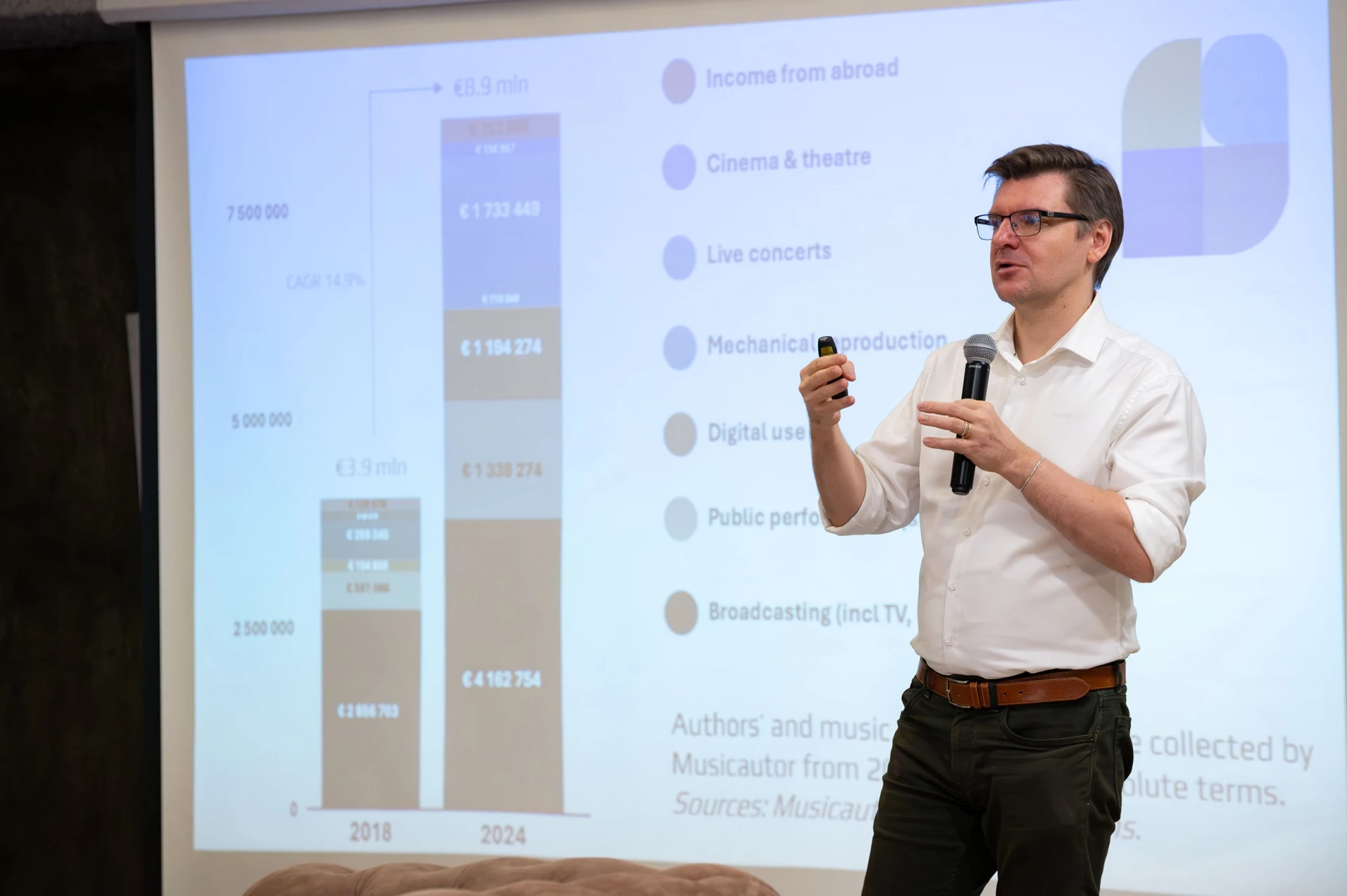 Вирго Силамаа е изследовател, преподавател и консултант в областта на музикалната политика и екосистема от Естония, който в момента живее в Брюксел. С над 20 години опит в музикалния сектор, в момента той е координатор по научните изследвания на EMEE (Европейската мрежа за обмен на музикални износители) и член на управителния съвет на Естонското дружество на авторите. Чрез неговия доклад, възложен от Българската асоциация на музикалните продуценти (БАМП) и финансиран от гранд на ПРОФОН, получаваме нов поглед върху музикалния бизнес в България с фокус върху икономиката на правата.