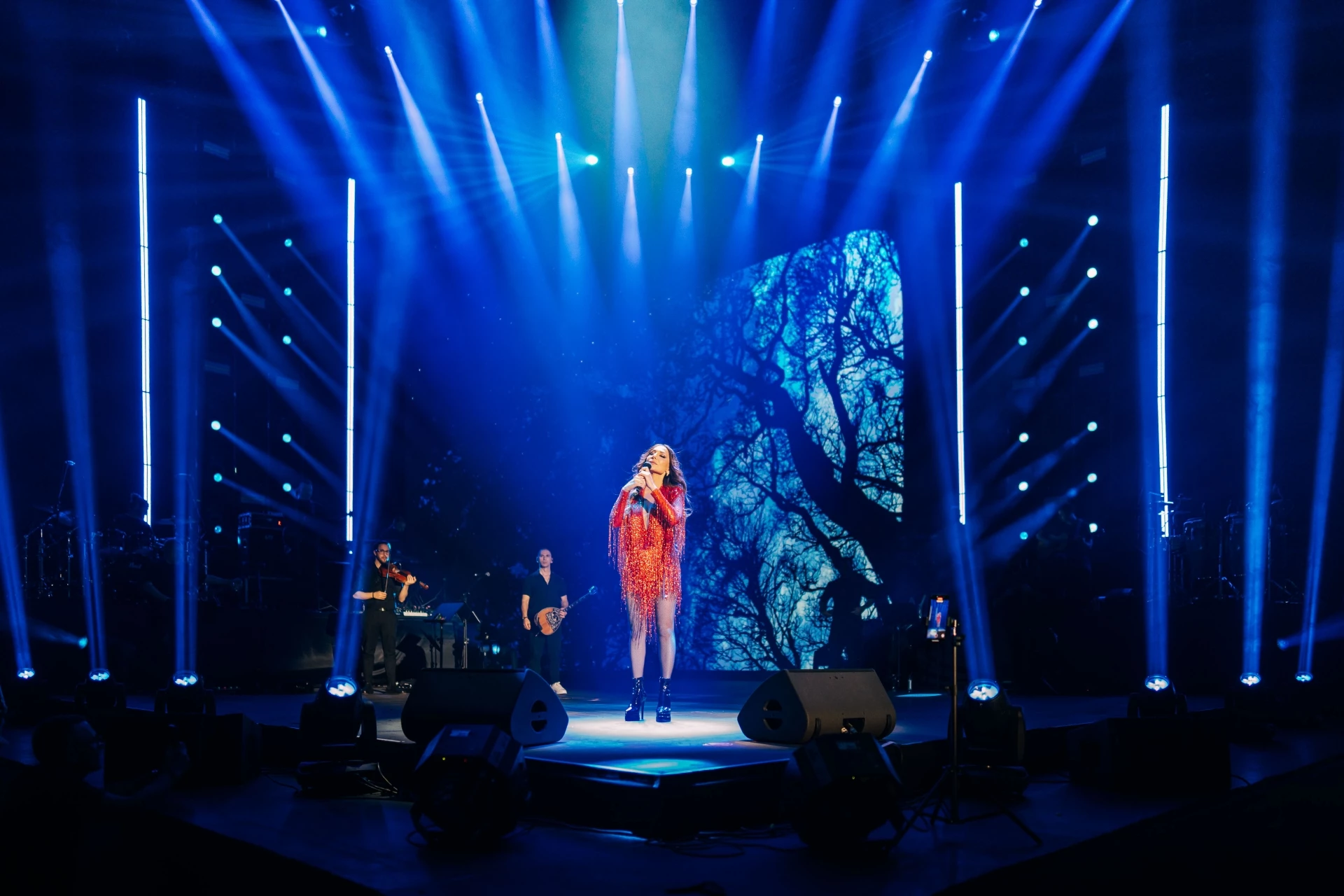През цялото време Деспина Ванди се движеше непрекъснато, сменяше ритми и настроения, а зад нея стоеше цял екип от музиканти и танцьори, които допълваха динамиката на шоуто. Хореографиите и визуалните елементи следваха емоцията на всяка песен, без да я изместват.