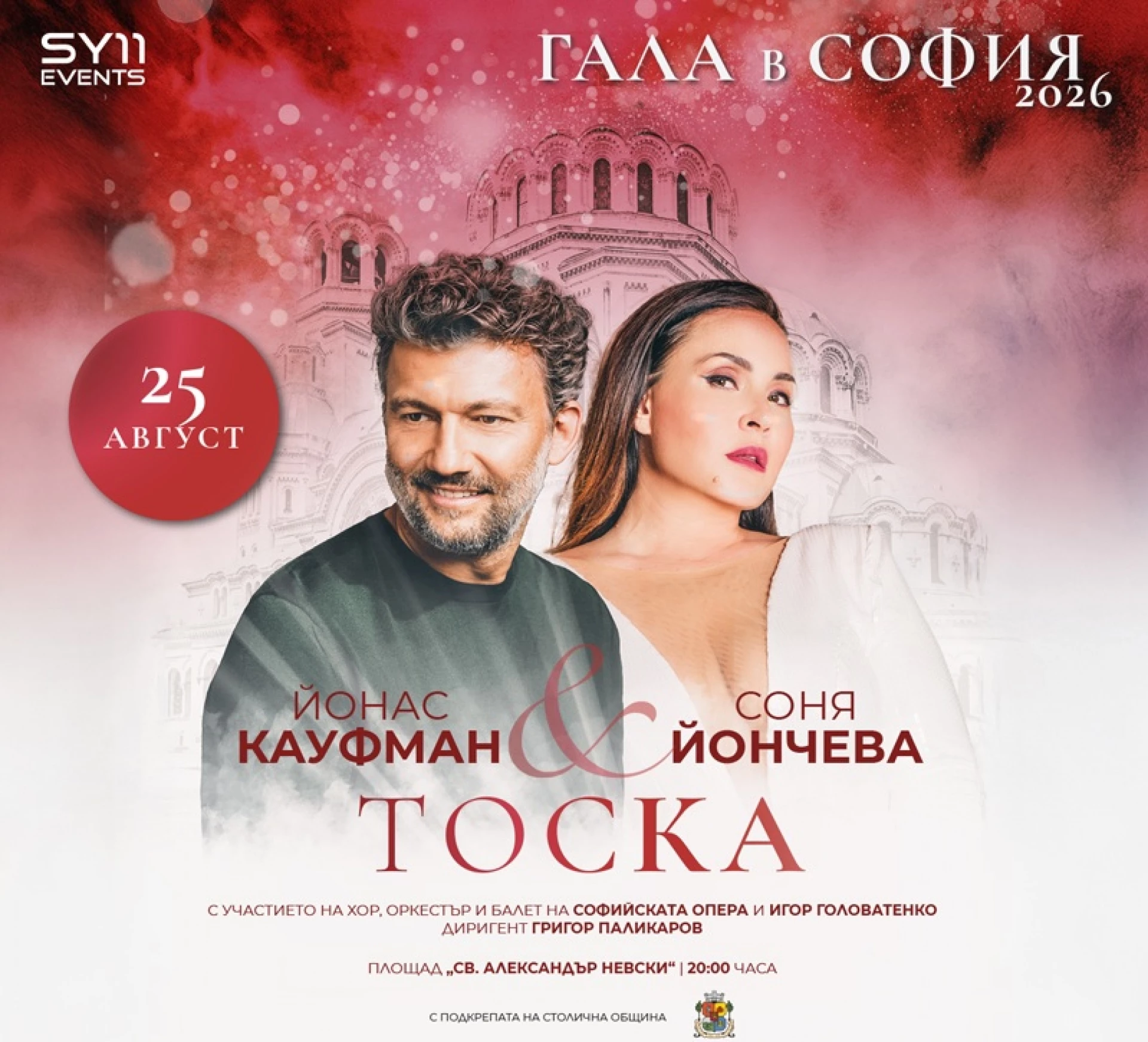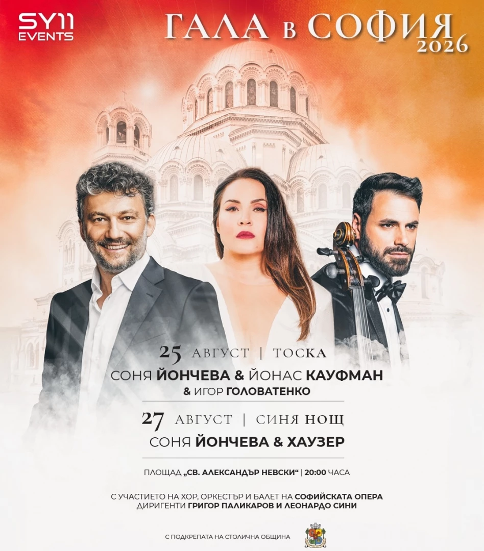 На 25 и 27 август в духовното сърце на българската столица ще се проведе станалата вече емблематична и традиционна "Гала в София" – този път в най-мащабния и най-емоционалния си фестивален формат досега. На грандиозната сцена на площад "Св. Александър Невски" редом до българската оперна прима, продуцент и издател Соня Йончева ще застанат тенор №1 на нашето време Йонас Кауфман и световната сензация в класическата и популярна музика – виолончелистът Степан Хаузер.