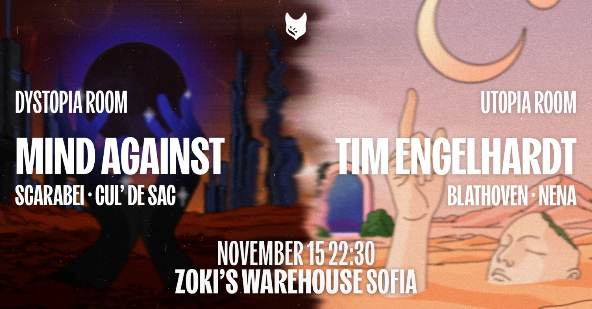 След паметното си събитие пред крепостта "Царевец" през септември Saké се завръща в София с пълна сила. На 15 ноември в Zoki’s Warehouse ще бъде създадена нова вселена, разделена на два свята – UTOPIA и DYSTOPIA. Начело на вечерта застава едно от най-разпознаваемите и уважавани имена в електронната музика днес – италианското дуо Mind Against, съставено от братята Алесандро и Фредерико Фонини. Те ще поведат публиката в света на DYSTOPIA заедно с резидентите на Saké – Cul’ De Sac и Scarabei.