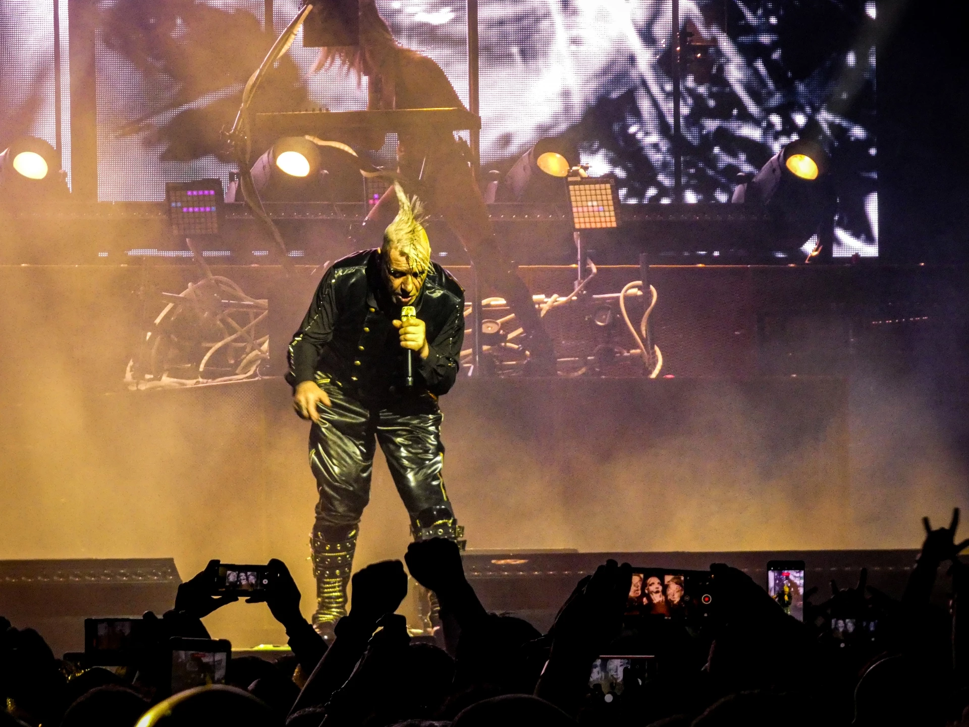 И почти точно в 21:15, феновете затаиха дъх и еуфорично посрещнаха Линдеман на сцената, скандирайки името му многократно.