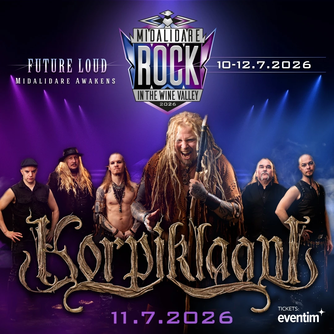 Фолкметълите от Финландия, Korpiklaani ще видим във втория ден на фестивала - 11 юли. Известни преди като Shamaani Duo и Shaman. за разлика от други фолк метъл банди, които започват с метъл и после добавят фолк, Korpiklaani стартират с фолк, преди да добавят и метъл към звученето си. Името на групата на фински език се превежда "Клан от пустошта", а в разговорния език "korpi" означава тъмна стара гора.
