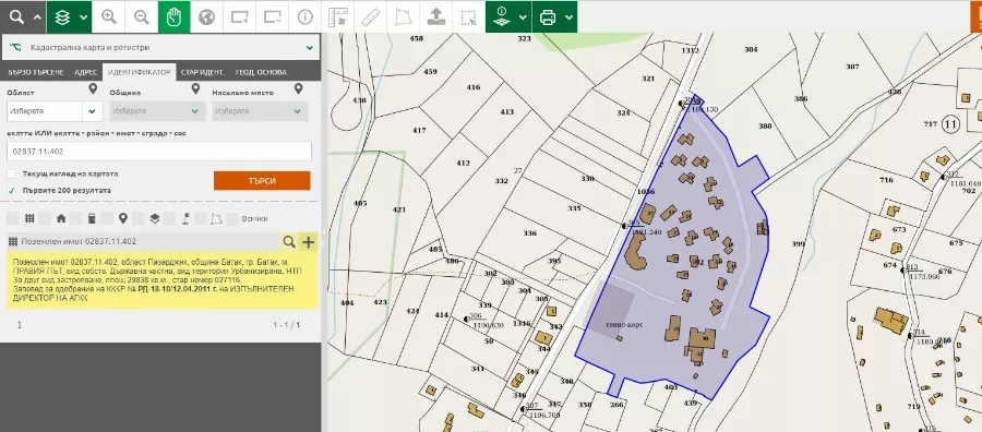 Поземленият имот в курорта Цигов чарк на югозападния бряг на язовир Батак, който подлежи на ремонт, е с площ около 30 000 кв.м. Той е предоставен в управление на Висш съдебен съвет за нуждите на Прокуратурата на Република България.
