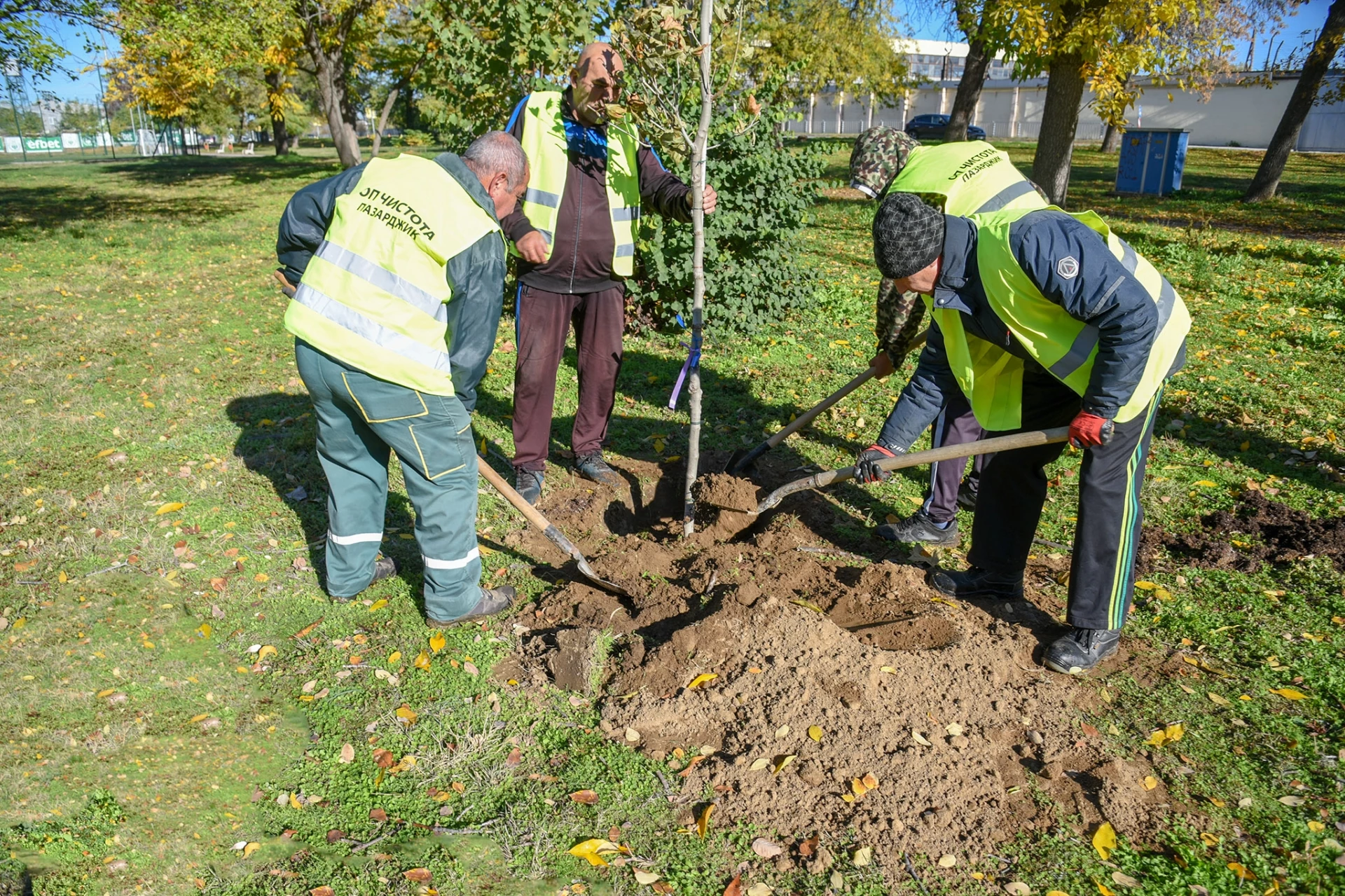 Днес Община Пазарджик засади десетки нови дървета в парк „Стадиона“, като част от последователната грижа за здравето и обновяването на зелените площи. Новите фиданки включват чинар, сребърен явор, европейски ясен и златиста плачеща върба. Залесяването се случва като продължение на извършеното през отминалия месец санитарно подкастряне и премахване на изсъхнали и болни дървета в парка – мерки, предприети за безопасността на посетителите и за ограничаване на разпространението на заболявания по дървесната растителност. Подборът на видовете е направен така, че да се насърчи устойчивостта на насажденията, с акцент върху издръжливост на заболявания, добра адаптивност към местния климат и щадяща коренова система, която не компрометира алеи, настилки и подземна инфраструктура.