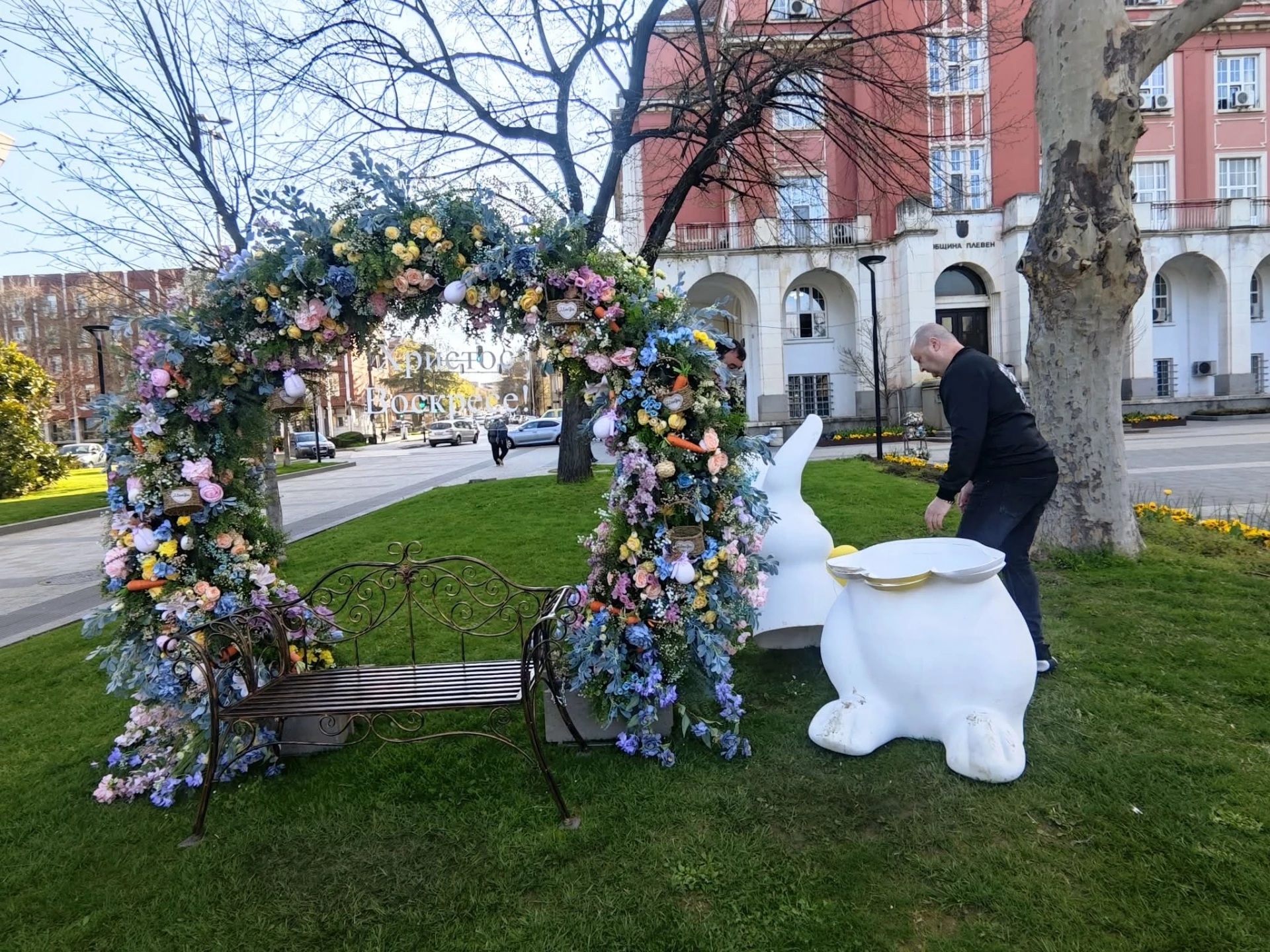 Установен е извършителят, унищожил част от новата великденска украса в центъра на Плевен броени часове след монтажа ѝ - фигурата на великденския заек, разположена пред сградата на Общината беше открита пречупена на две на 7 април сутринта.