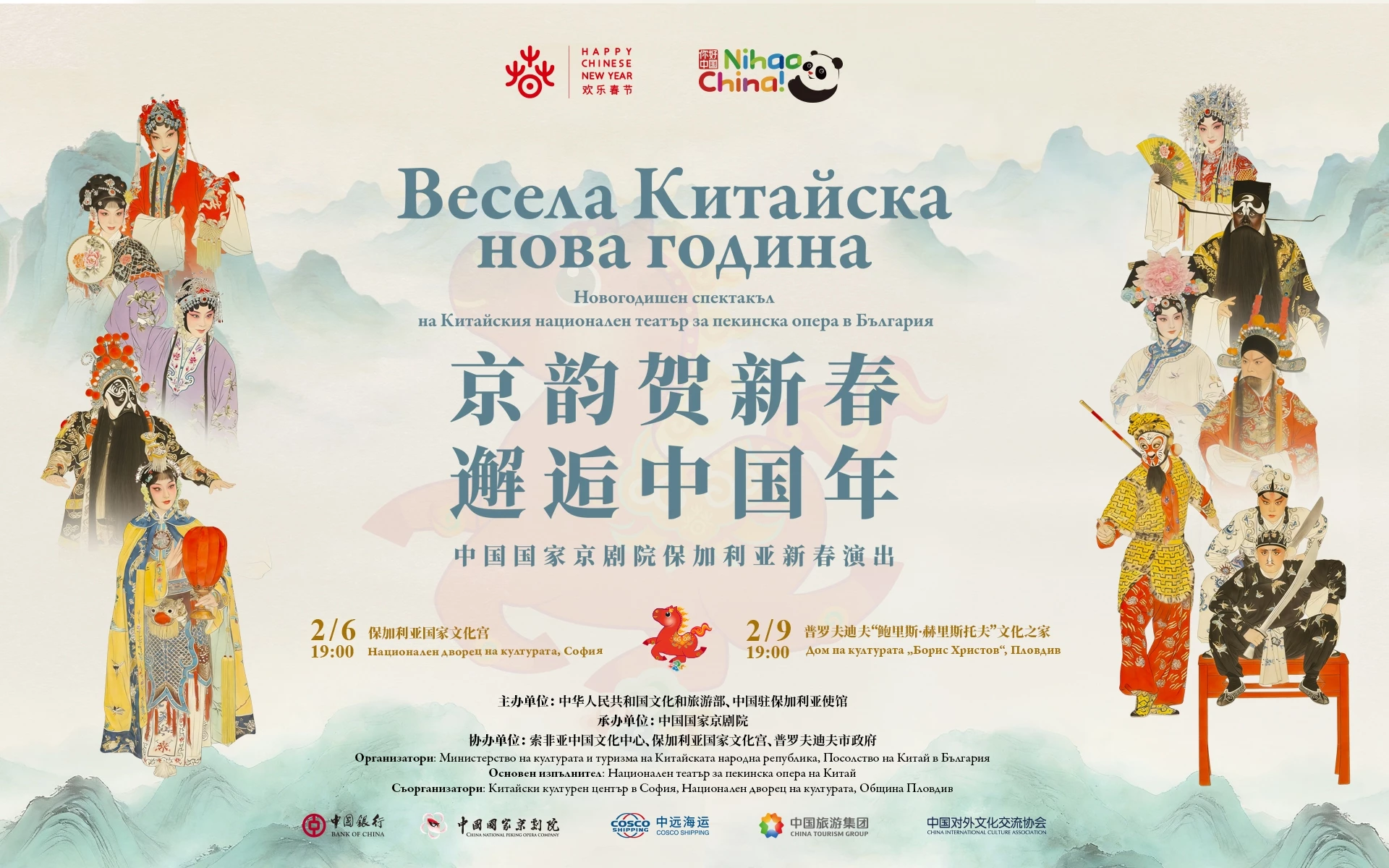 От 2011 до 2025 г. инициативата „Весела Китайска нова година“ се провежда успешно в България в продължение на 15 поредни години. Тазгодишният празничен спектакъл носи особено значение – това не е просто среща на българската публика с Китайската нова година и пекинската опера, а едно вълнуващо и дългоочаквано културно преоткриване. Това е първият голям гастрол на Националния театър за пекинска опера в България, от неговото основаване през 1955 г насам. Но връзката между театъра и България има по-дълбоки корени. Още през 1952 г. двама от пионерите на театъра, Джан Юнси и Джан Чунхуа, стъпват на българска сцена като част от Китайската младежка художествена трупа, представяйки класики като „На кръстопът“ и „Дворецът на Дракона“. Техните изпълнения оставят незабравимо впечатление у българската публика.