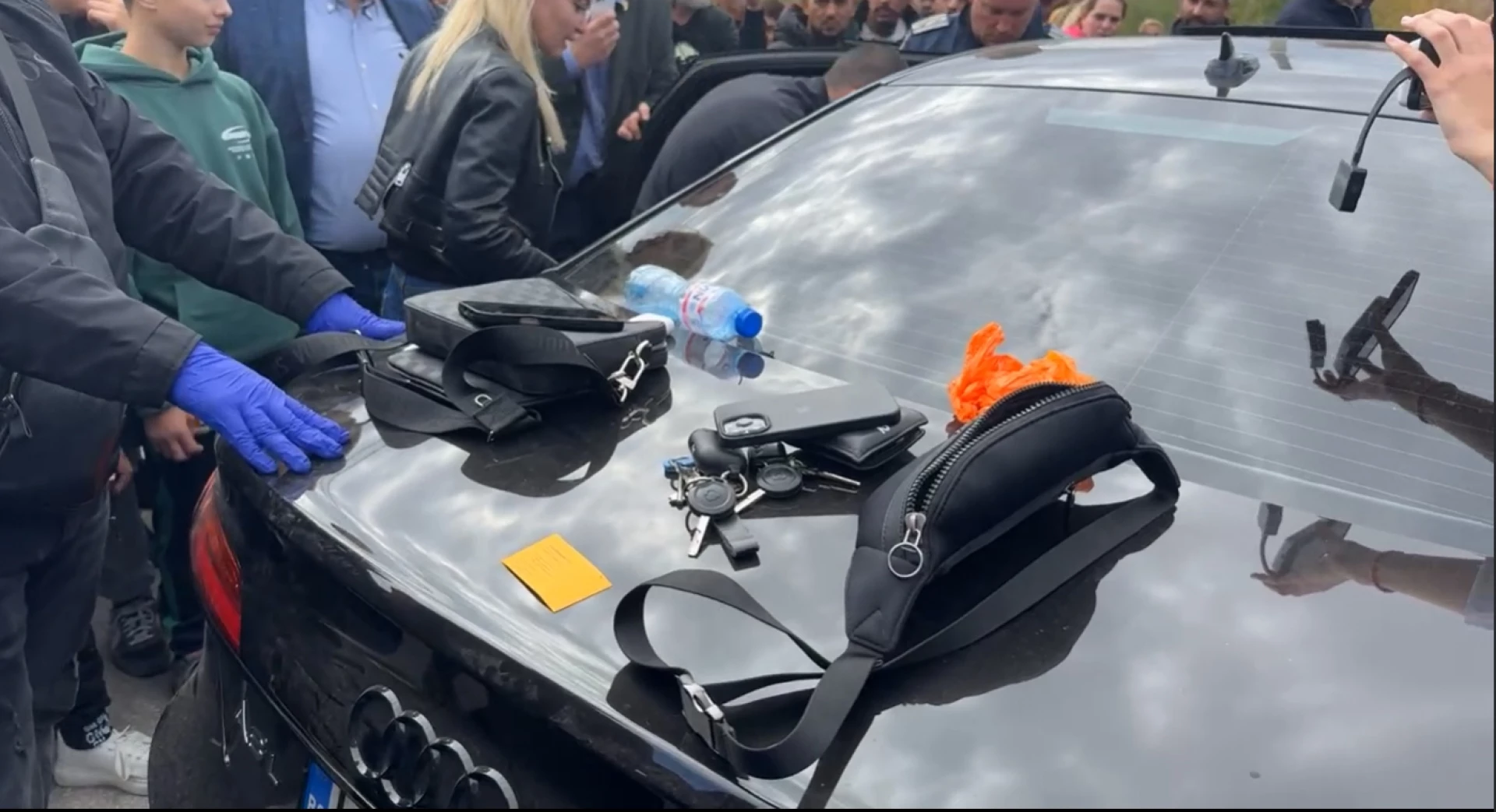 На място полиция претърсва колите. От видеата е видно, че в скъпите маркови автомобили (СТ 9959 ТК и РВ 0009 СЕ) са намерени множество вещи, като наблюдателите твърдят, че има открити и хиляди левове в багажници (ок. 5000 лв.). Освен двамата задържани на място е имало и шофьор, който е избягал. Единият автомобил има на предното стъкло стикер на МВР. Намерена е и полицейска значка. Задържани са общо по-късно от ведомството.