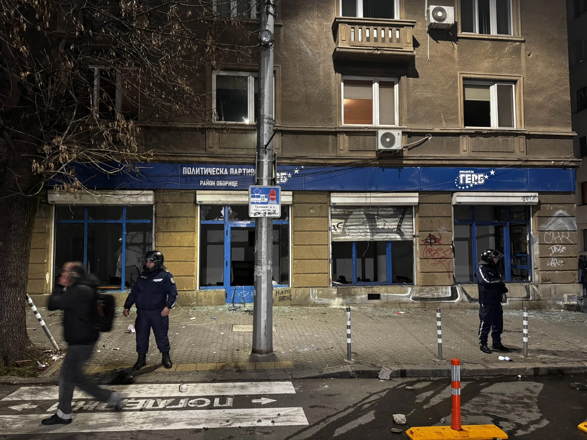 Изпотрошен беше и офис на ГЕРБ в район "Оборище", като едва не беше запален. Един от мъжете хвърли горящ стол в помещението, който други няколко души извадиха отново на улицата, за да не избухне пожар в жилищната сграда.