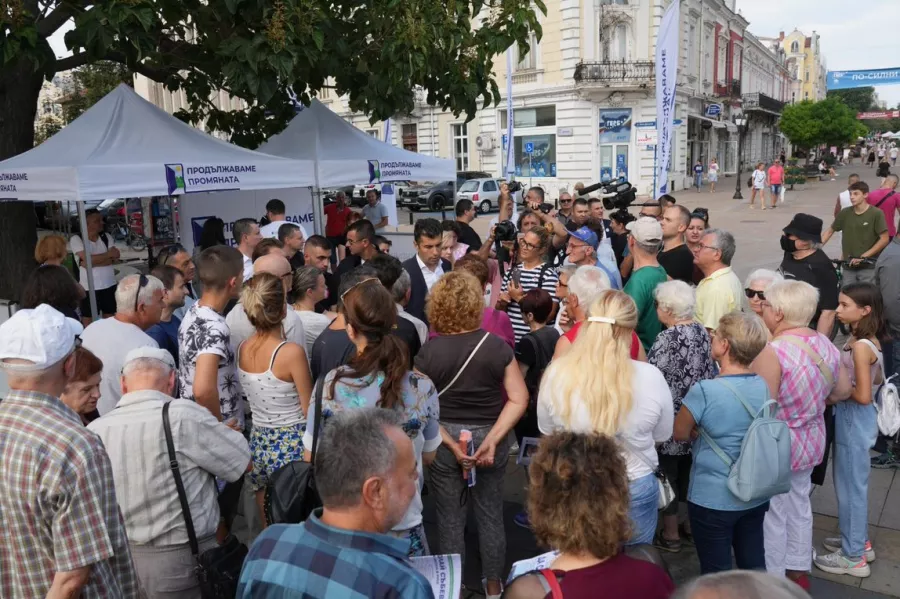В Русе Кирил Петков, отборът на "Промяната" и кандидат-депутатите от Русе заедно с водача Николай Събев, се срещнаха с граждани. Кирил Петков се обърна към хората с думите, че задачата на ПП е до 4 години пенсиите да могат да стигнат 900 лв.