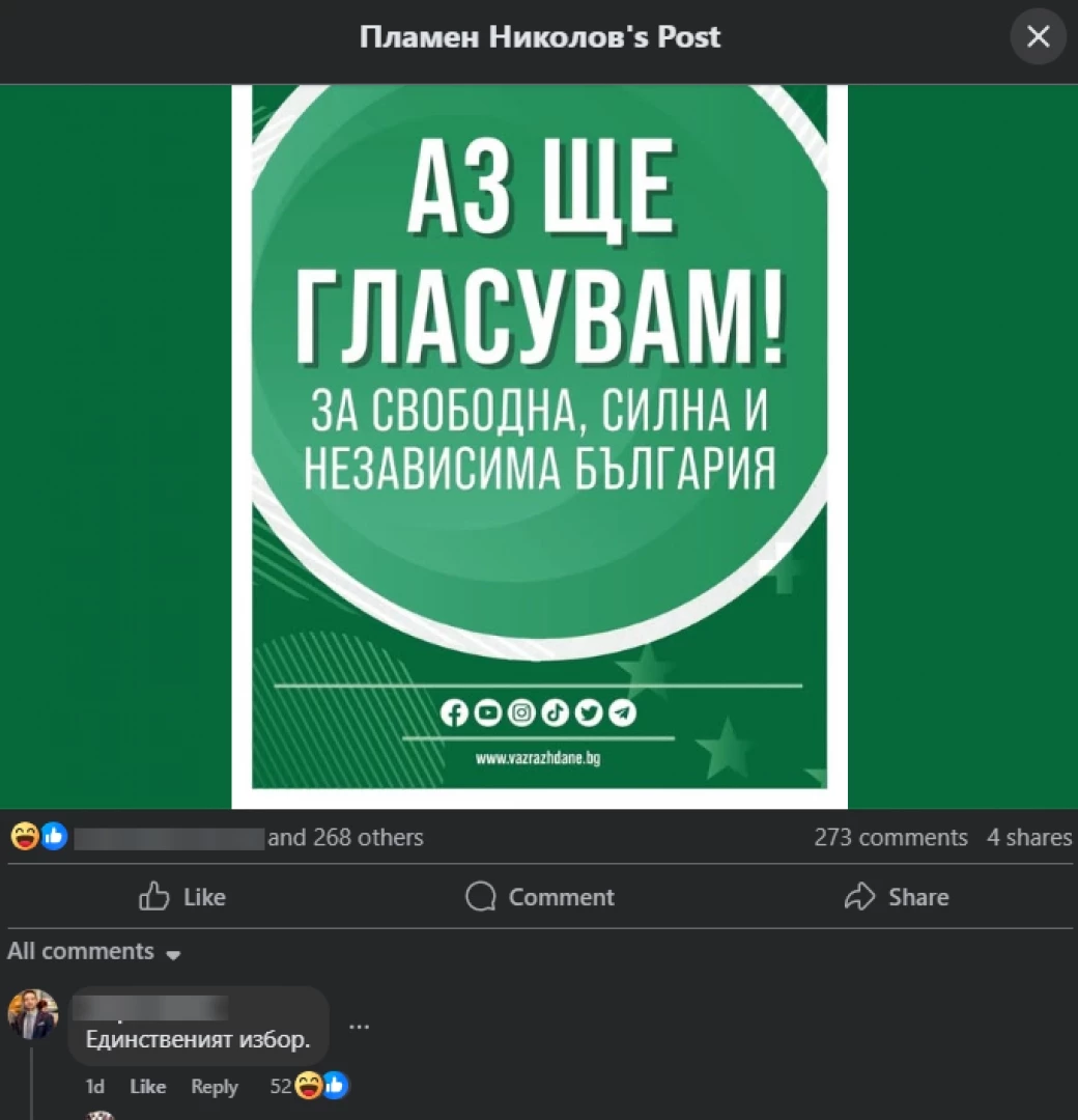 В публикацията си той пише, че "наесен, с нова стара песен, новоизпечен месия отново ще снизходи при нас и ще започне да ни спасява от кризите, както всички подобни преди него, но все така няма да му се получава, защото ще му се наложи да управлява в коалиция, понеже все пак не сме били така мъдри да му гласуваме пълно доверие, давайки му цялата власт". Тук вероятно Николов визира както своята бивша партия ИТН, която искаше самостоятелно цялата власт, така и очакваната поява на президента Румен Радев на партийния терен.