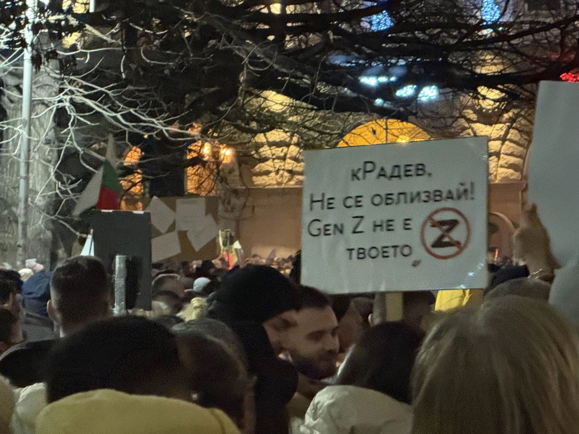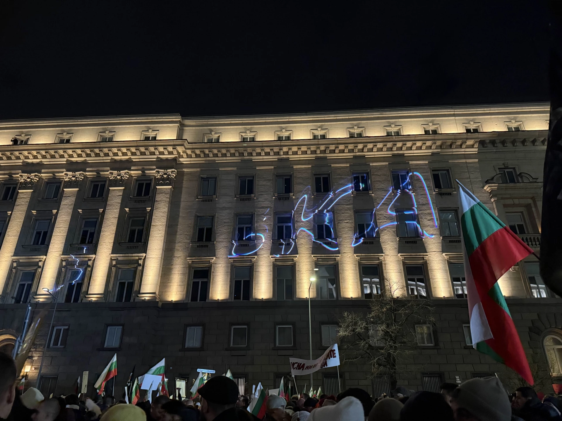 Александър Танев от сдружението на студентите, който е студент по специалност „Право“ в Софийския университет „Св. Климент Охридски“, междувременно обяви пред протестиращите, че на балкона на СУ виси огромен банер с надпис "Студенти против мафията". "Нашият колега стои сега там, в аулата на Софийския университет. Наложи се да нахлуя в аулата, когато там имаше конференция. Искам да се извиня от името на сдружението, че създадохме стрес и нахлухме. Но личното ми мнение е, че веднага трябва да направим всичко възможно, за да си спасим страната. И сега колега от нашия факултет - Владо, седи в аулата и пази банера от охраните. Момчето ми каза: "Аз ще стоя тук, колкото трябва, за да стои този банер на балкона на СУ и всички да го видят". И най-накрая да разберем, че студентската общност е будна. Тя не само е будна, тя е смела и ще даде всичко възможно, за да си спаси държавата!", обяви под възгласите на демонстрантите Танев.