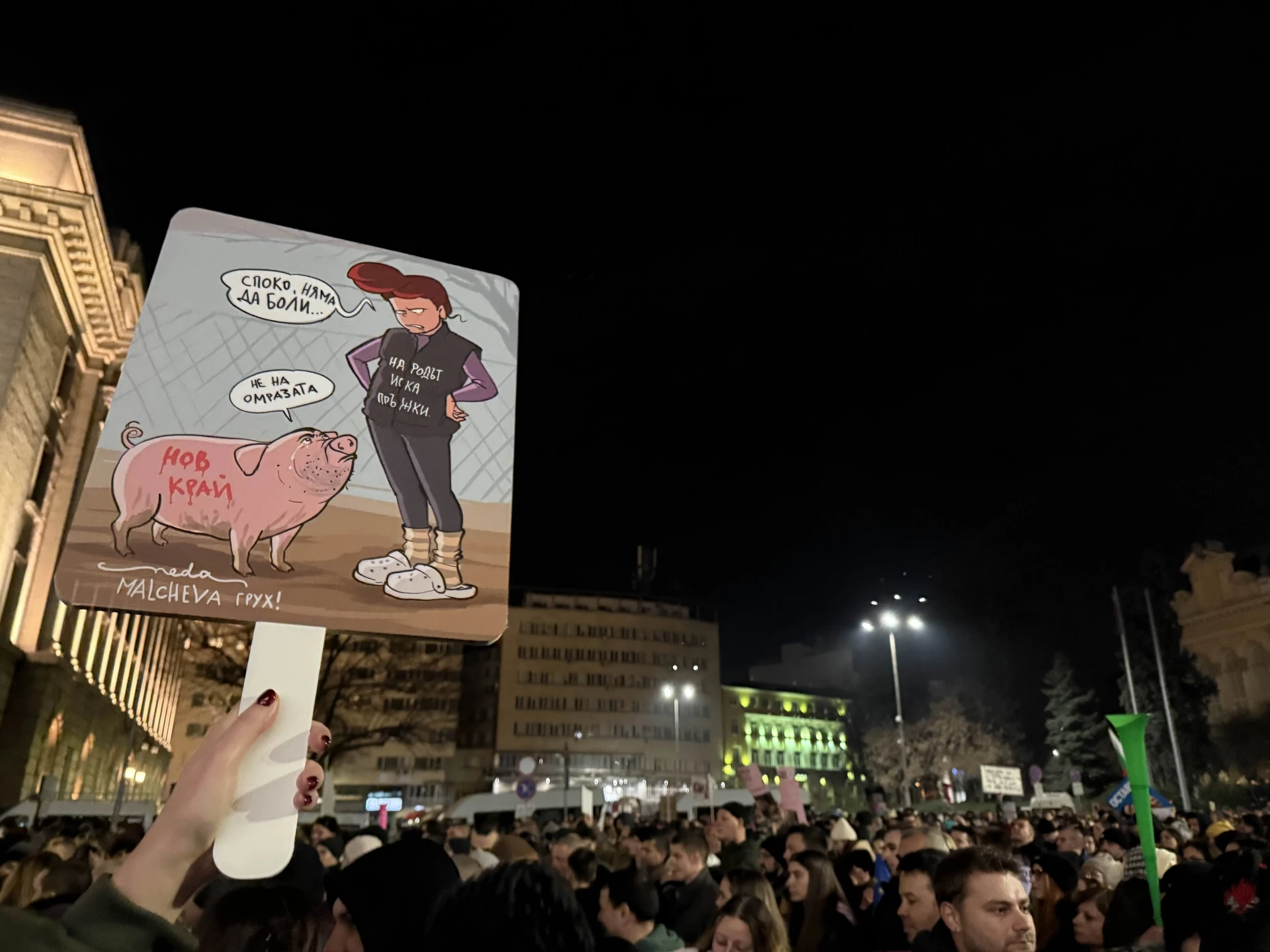 18:30 ч. - Водещият на протеста се обърна директно към санкционирания за корупция Делян Пеевски с ирония: "Сорос изпрати мен и вас да излъжем всички колко не е хубава онази с***я, дето всяка вечер я гледаме, искаме или не. И ни обяснява ние какви сме, какви не сме, какъв е той и т.н. Няма нужда да питам дали знаем какво правим тук. Знаем ли какво правим тук? Защото вчера видяхме хора на други протести, които май не бяха много сигурни какво правеха там", каза той във връзка с контрадемонстрациите на "ДПС-Ново начало" под надслова "Не на омразата!".