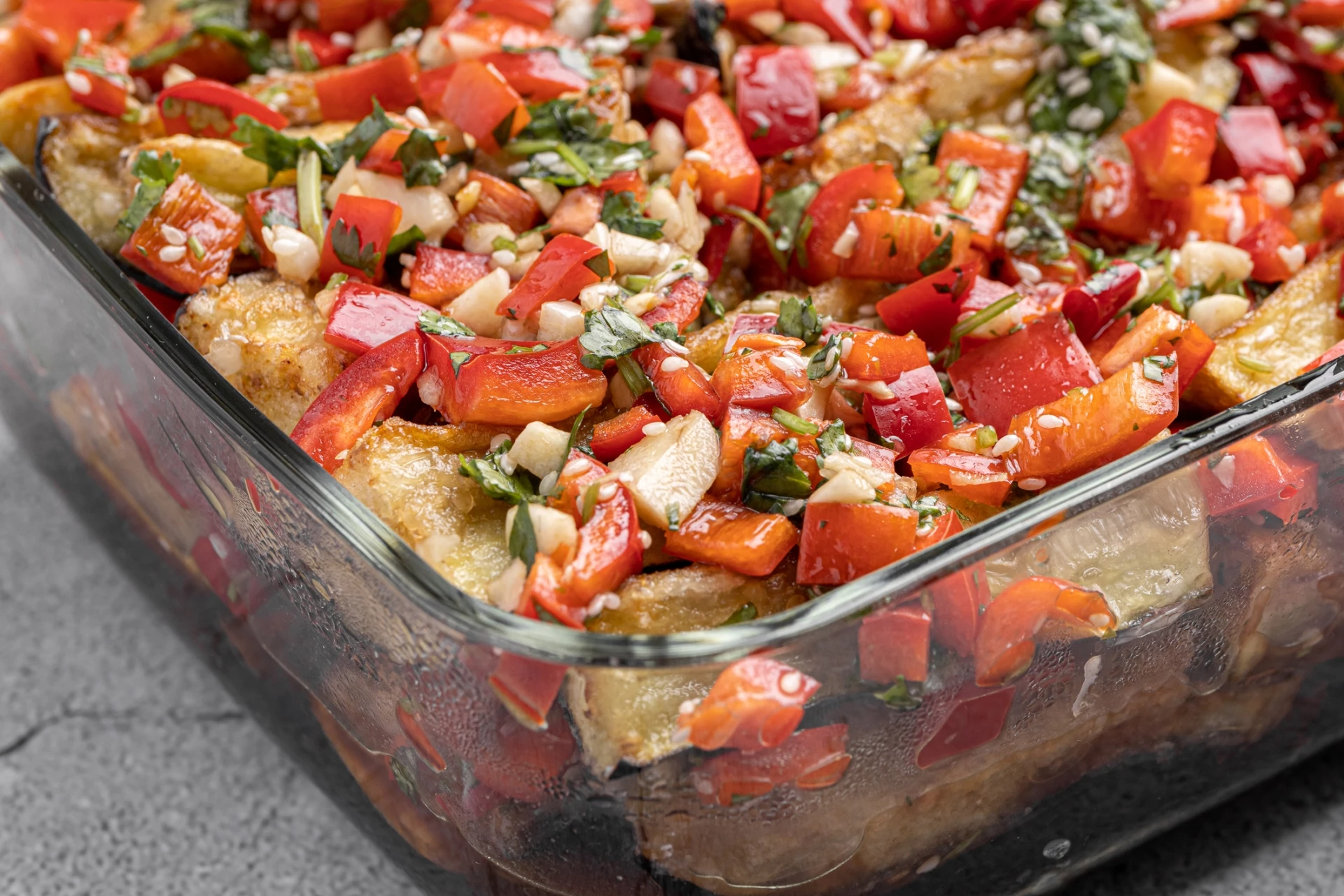 Тук е ясно кои са основните продукти, а количеството им зависи от това в колко голям съд ще ги готвите. Нарежете картофите, тиквичките и патладжаните на кръгчета. Задушете в тиган ситно нарязан лук, морков и чесън, а след това добавете ситно нарязан домат. Когато всички продукти омекнат, добавете сол и черен пипер на вкус.