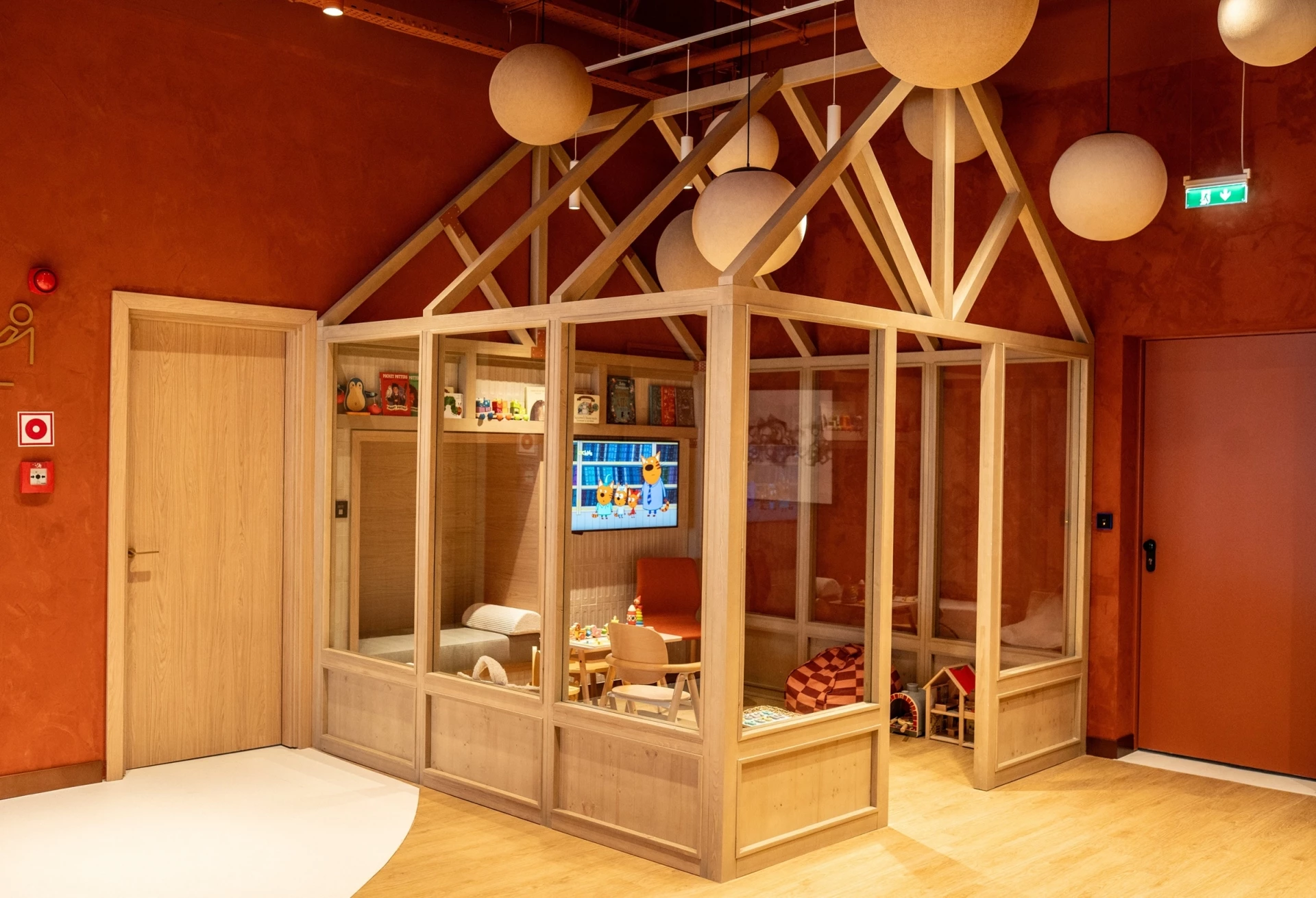 Пространството е проектирано като плавна, хибридна среда, в която гостите естествено могат да преминават през различни състояния - общуване, работа и почивка. Бар и зона за отдих, специализирано кулинарно пространство, работни зони, детски кът, тиха стая за почивка и открита тераса създават заедно многопластова среда, която отразява ритъма на съвременното пътуване.
