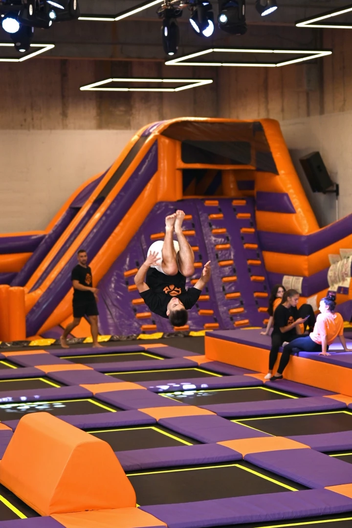 Локацията в София предлага широка гама от дейности, включително зона с батути в олимпийски стил, интерактивна стена, предназначена за тестване на ловкостта, състезателен „батъл бар“ за баланс, елементи за катерене и фитнес, като например маймунски барове, и популярната „Slam Zone“ за баскетбол с помощта на батут. Последната новост, Cage Ball, въвежда динамично предизвикателство за хвърляне между двама играчи, фокусирано върху точност, скорост на реакция и приятелско състезание. Мястото привлича широка аудитория, от семейства до групи млади хора, и се е превърнало в редовна дестинация за училищни посещения и рождени дни.