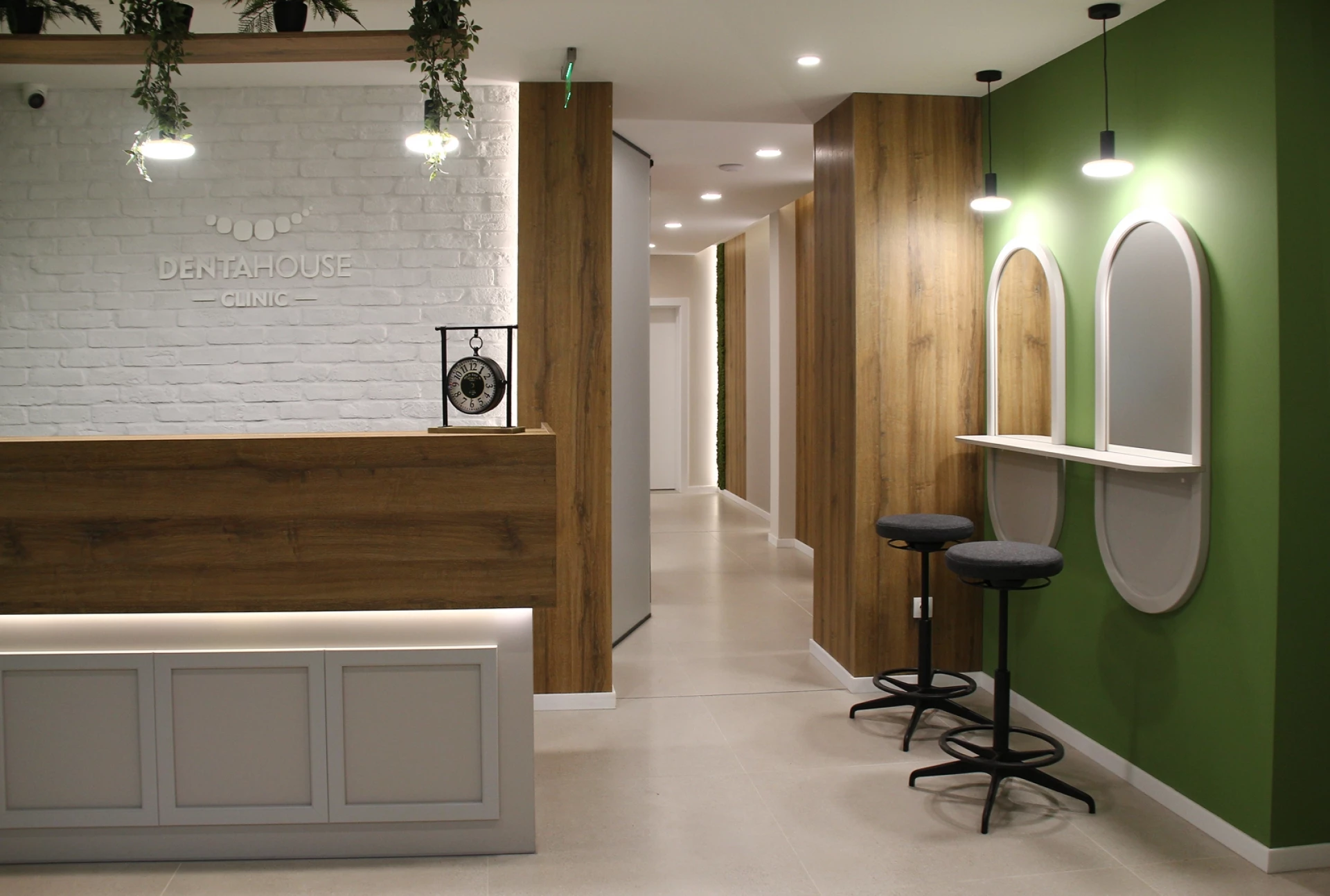 Denta House е създадена като пространство, в което пациентът не просто влиза – той пристъпва в свят на спокойствие, светлина и внимание. Интериорът е вдъхновен от идеята за уют и естетика, далеч от студената стерилност на традиционните клиники. Всяко пространство е проектирано с внимание към детайла и акцент върху осигуряването на комфорт за пациентите – от посрещането до изпращането. Обстановката предразполага към спокойствие и изграждане на доверие.