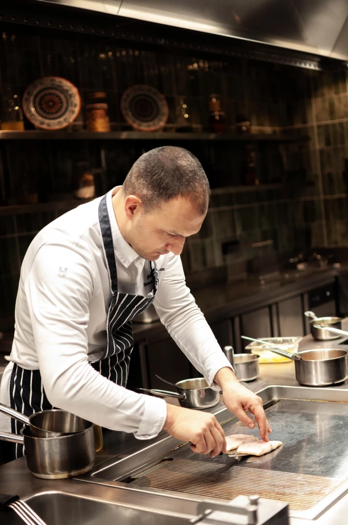 В момента шеф Тодоров ръководи кухнята на престижния Come Prima в Kempinski Hotel Grand Arena Bansko, а гостуването му в столицата обещава висок стандарт и нов прочит на сезонните продукти. Специалното петстепенно меню за вечерта е изградено върху философията на чистите пролетни вкусове, в които класическата техника среща съвременната кулинарна естетика. Преживяването започва с амюз-буш от цвекло и перли от кисело мляко, последван от милфьой с крем от български трюфел – елегантна интерпретация на класическата лучена супа.