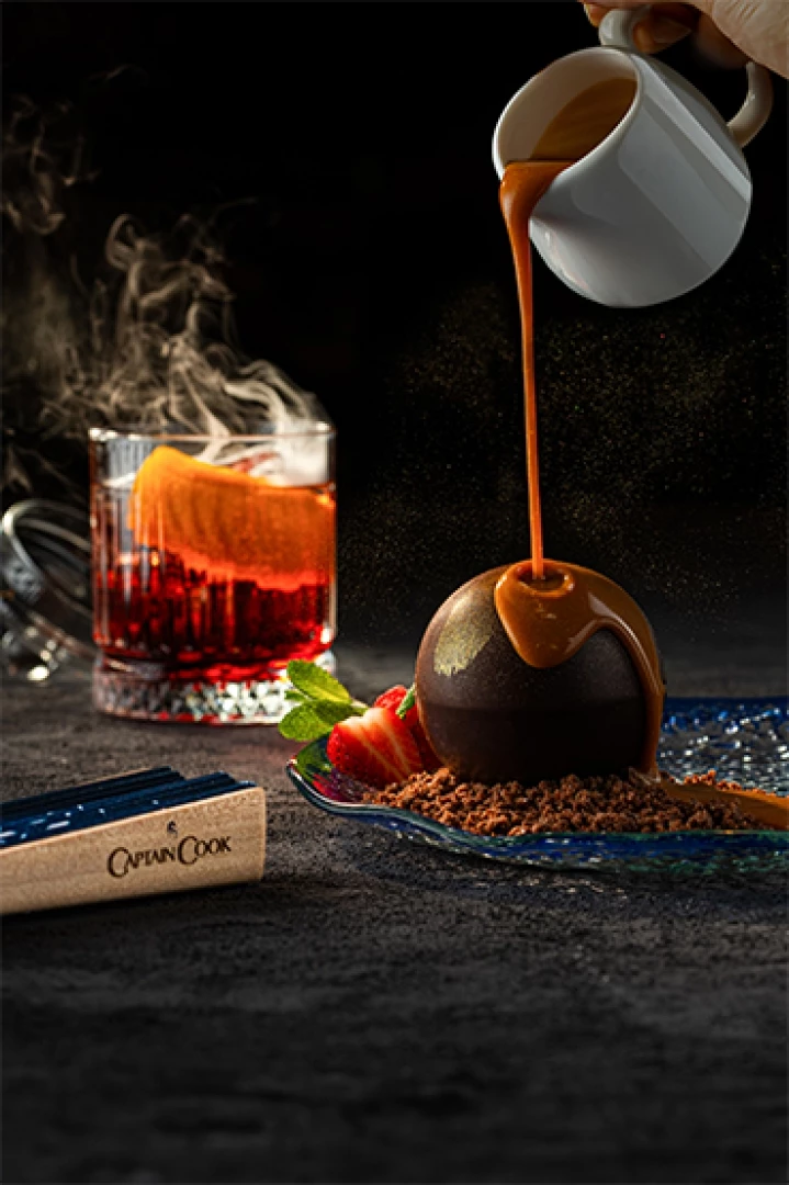 В залата на Captain Cook всичко говори на езика на романтиката - от нежната светлина до тихата музика. Погледите се срещат над чаши с вино, а ароматът на прясно приготвени ястия се слива с чувството за уют и близост. Обслужването е ненатрапчиво и изискано - подчертаващо вниманието към всеки гост. Ресторантът разполага със 180 места, но атмосферата остава интимна и топла, създавайки перфектната сцена за двама. Относно финалът, той принадлежи на десертите - един сладък епилог на кулинарната поезия. Протеиновият кейк със сезонни плодове е лек, нежен и деликатен, докато шоколадовото суфле просто разтапя сетивата, оставяйки усещането за пълно щастие.