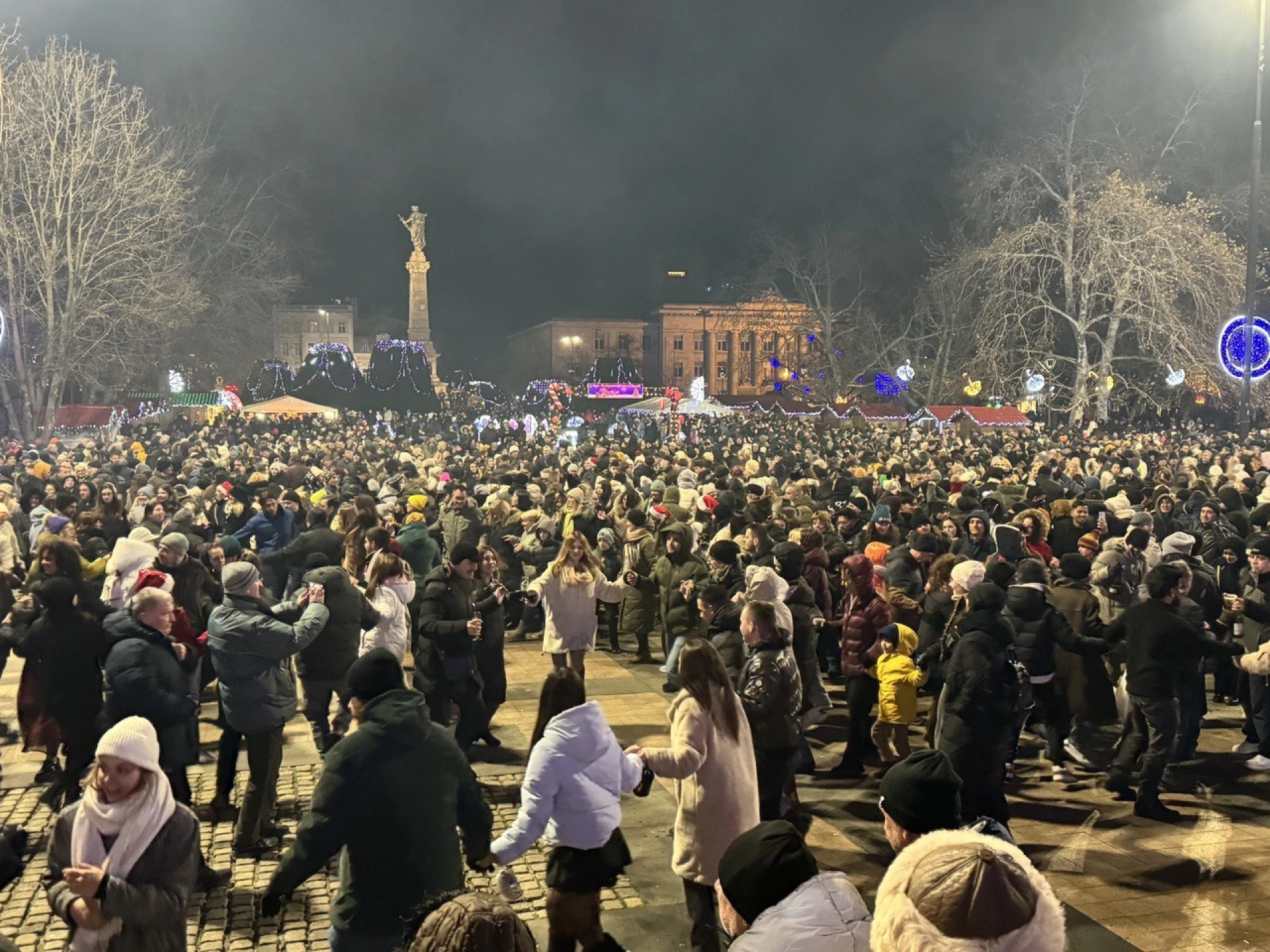 Малко преди полунощ на видеостената беше излъчено новогодишното приветствие на президента на Република България Румен Радев, последвано от тържествено отброяване на последните секунди на 2025 година и празнична заря.