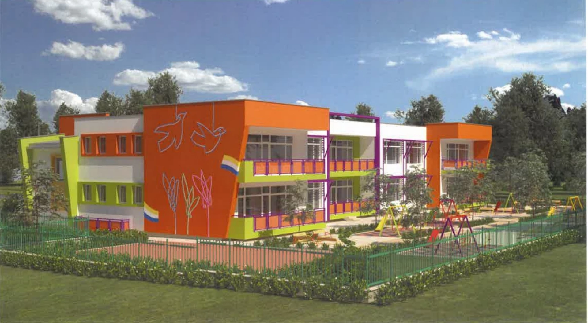 Сградата ще бъде разположена в северната част на имота, като достъпът до нея и стопанското обслужване ще се осъществяват от ул. „Панагюрище“. Южната част на дворното пространство е предвидена за игри и отдих на децата, с обособени площадки за всяка яслена група, обща физкултурна площадка и озеленени площи.